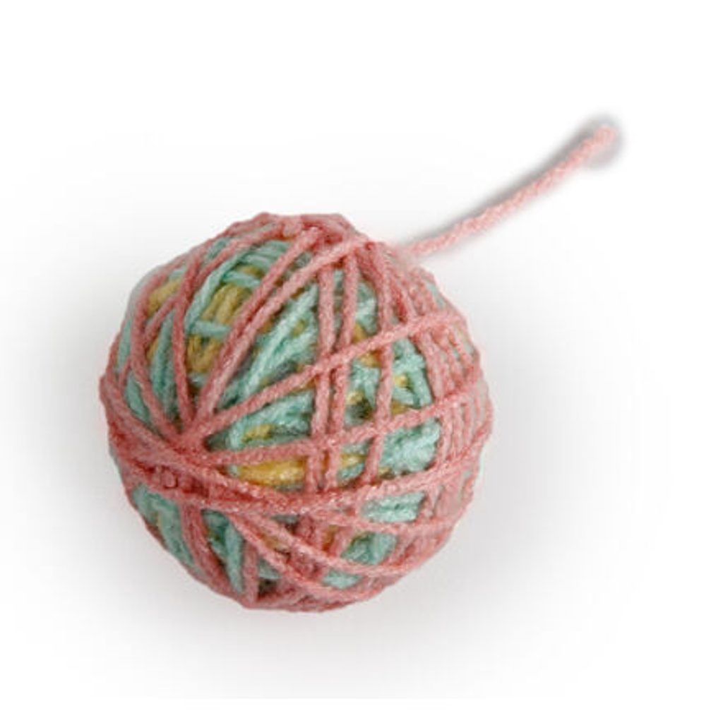 Hračka imitující klubko příze plněná šantou. Velikost 4,5 cm. Hračka