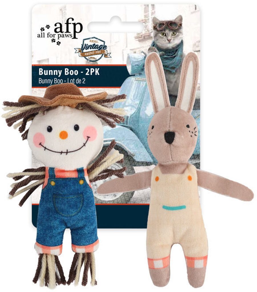 Strašák a králíček – set hraček z měkkého plyše s šantou kočičí uvnitř. Pro velké kočky i malá koťátka, k divoké hře i mazlení. Velikost hračky cca 16 cm. Zábavný