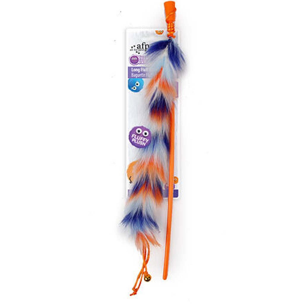 Dlouhá chlupatá pestrobarevná hračka na udici s rolničkou nadchne každou kočku. Velikost 44 cm. Dlouhá