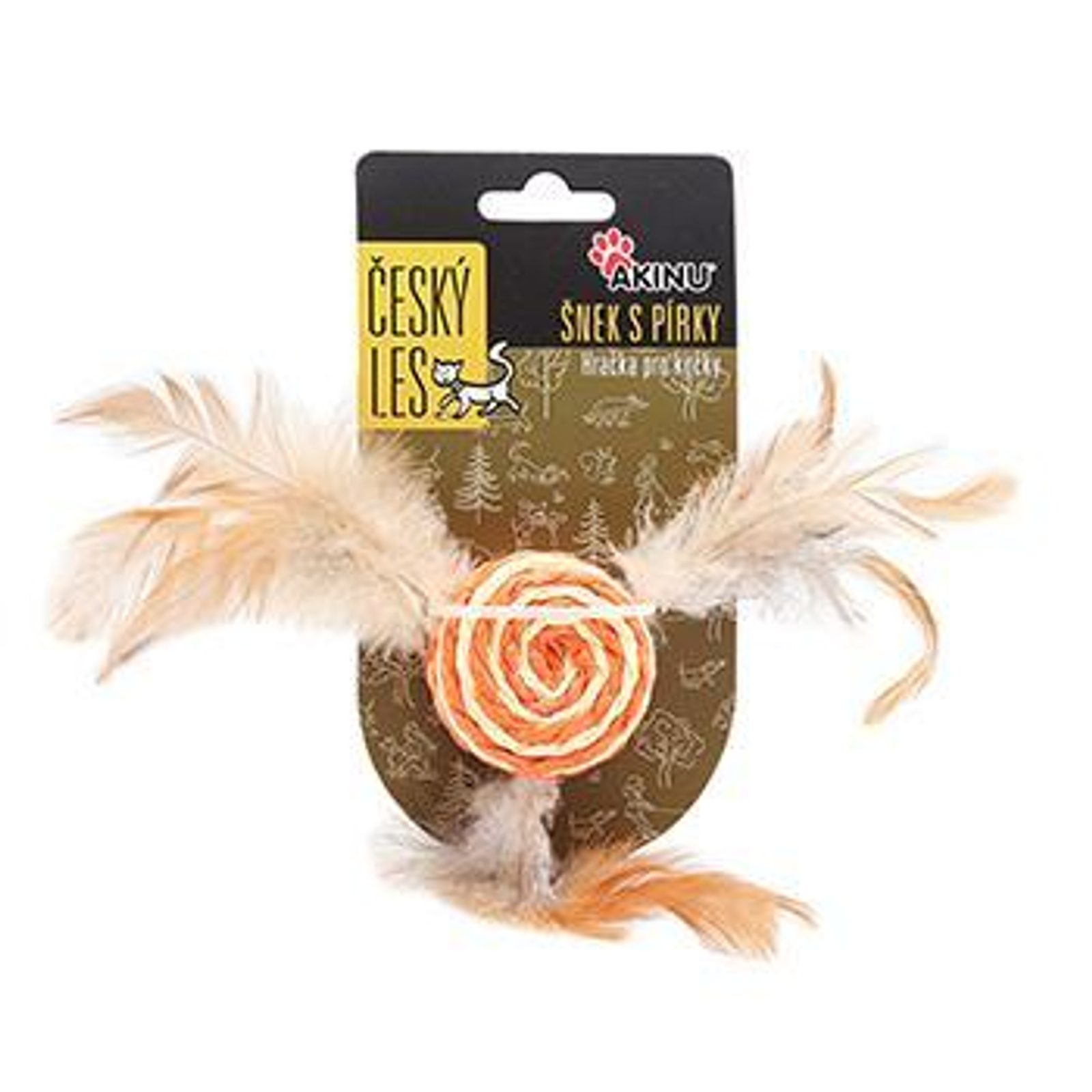 Akinu ČESKÝ LES Šnek sisal s pírky hračka pro kočky oranžová