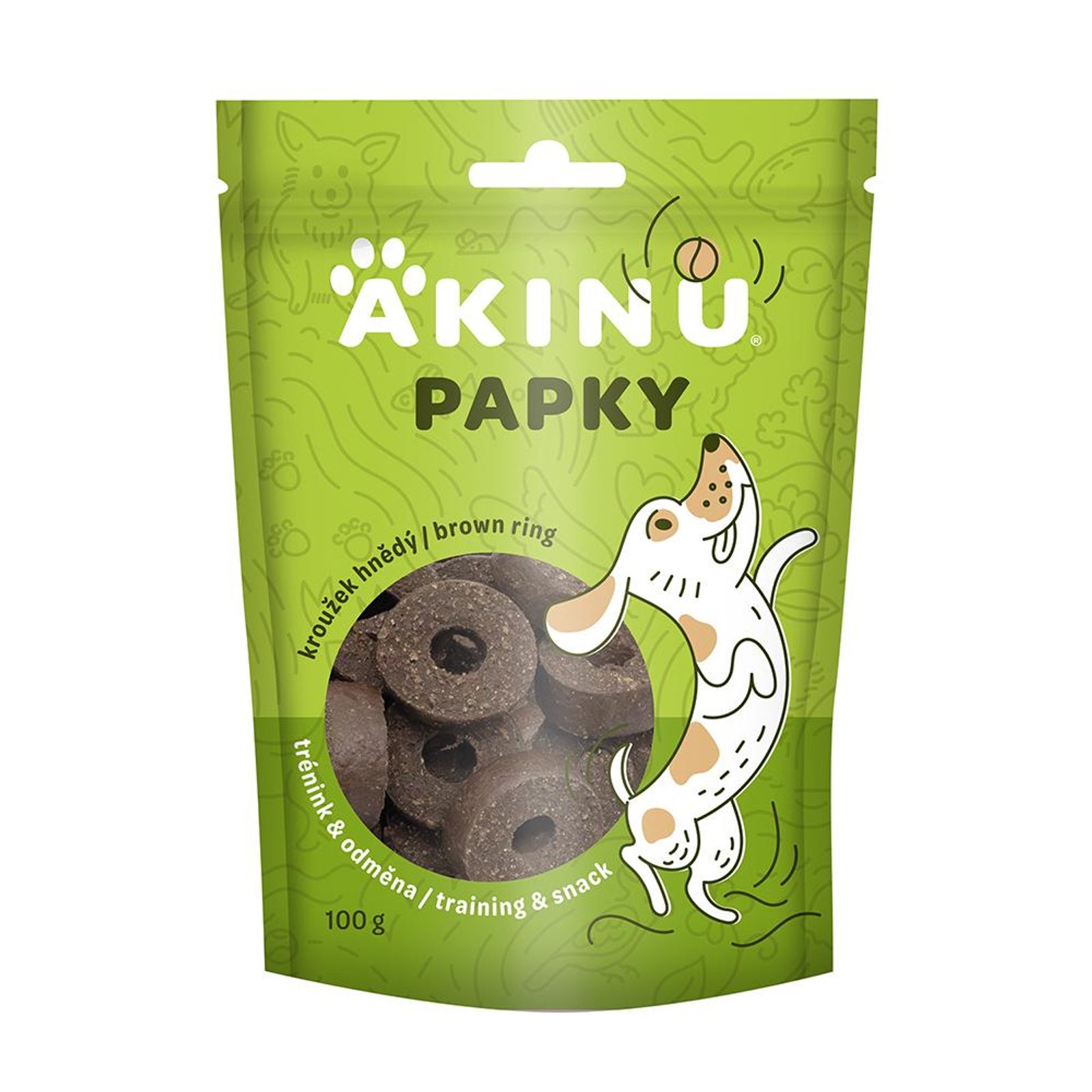 Akinu PAPKY Kroužek hnědý je lahodný pamlsek pro psy, který spojuje zábavný tvar a ch Akinu