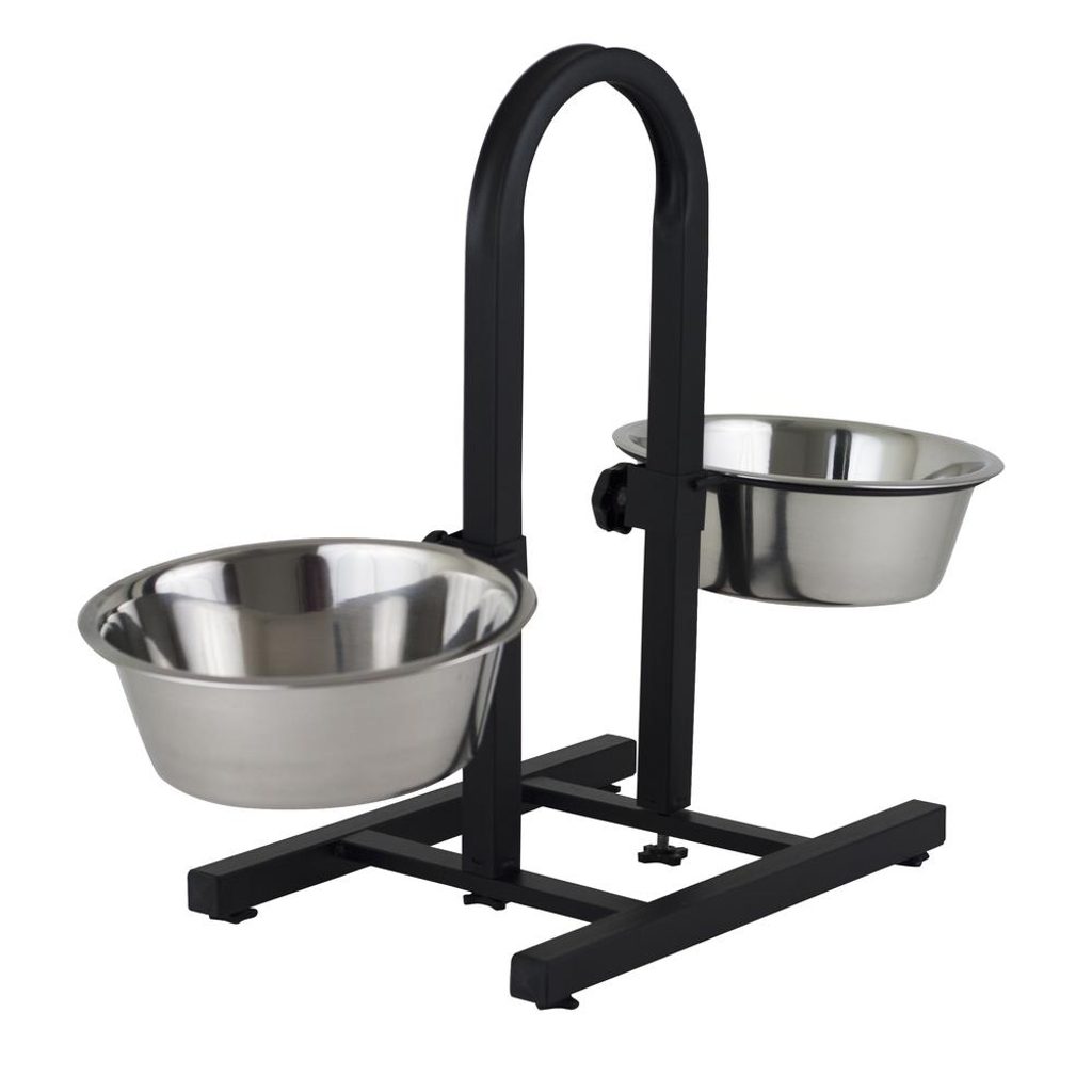 Stojan je se dvěma nerezovými miskami.