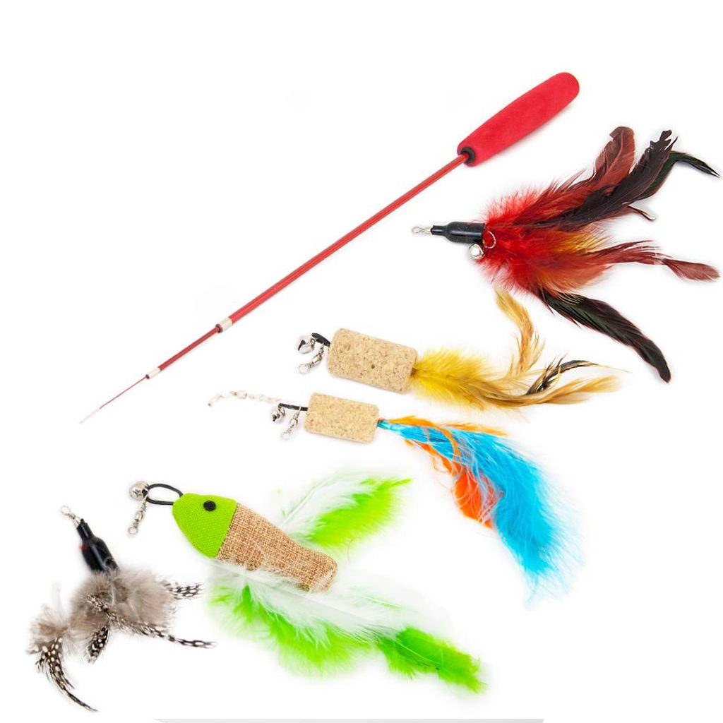 Nová udice pro kočky 5 v 1 je kombinací teleskopické udice s pěti různými návnadami p Nová