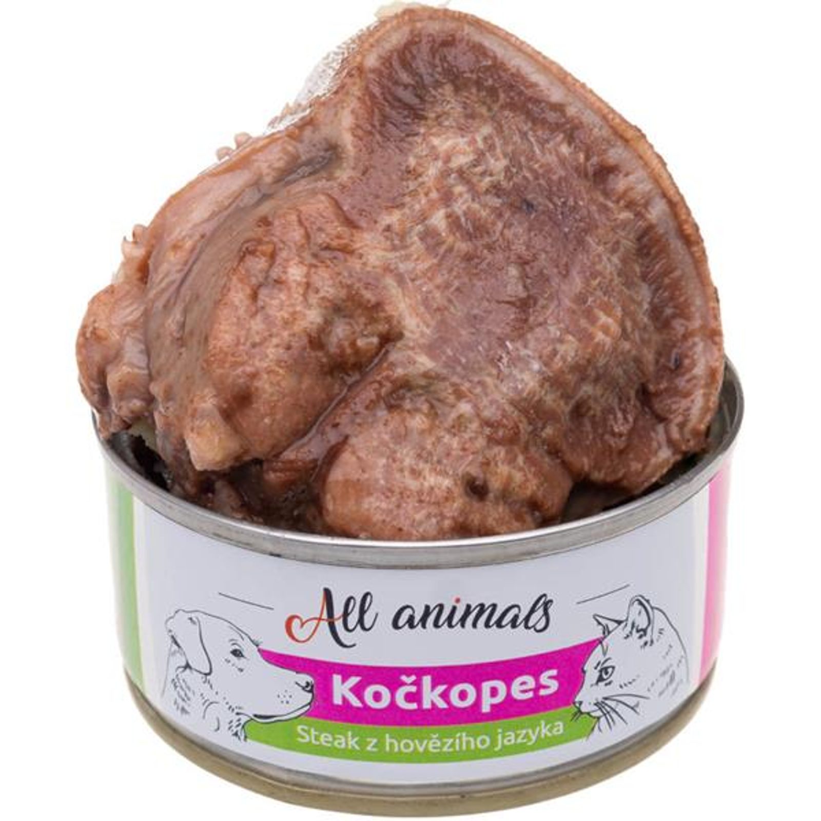 ALL ANIMALS Kočkopes konz.steak z hov.jazyka 100g ALL ANIMALS Kočkopes konz.steak z hov.jazyka 100g Plnohodnotné vlhké krmivo bez obilovin se 100 % deklarovaným zdrojem živočišného proteinu. steak z hovězího jazyka bez přidaných složek neobsahuje žádné chemické ani konzervační přísady vhodné pro všechny věkové kategorie psů a koček Složení: hovězí jazyk. Výrobek neobsahuje sóju a obiloviny, vyrobeno bez dochucovadel, konzervačních a barvících látek.
