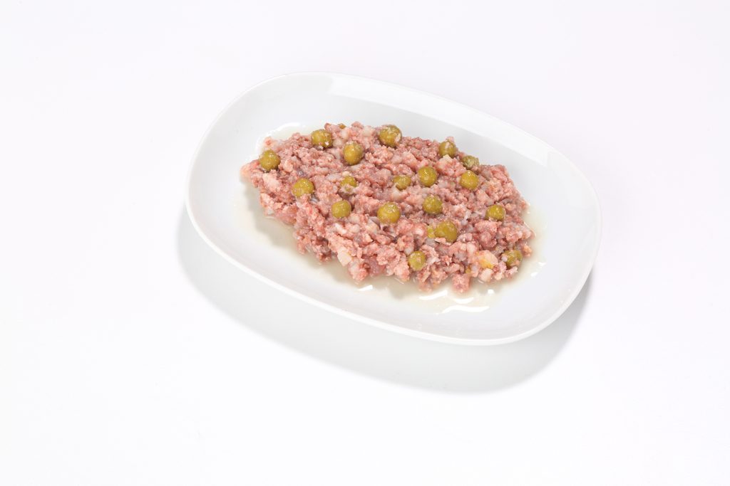 Složení: Hovězí maso 43%, hrášek 12%, brambory 12%, rýže 2,5%.