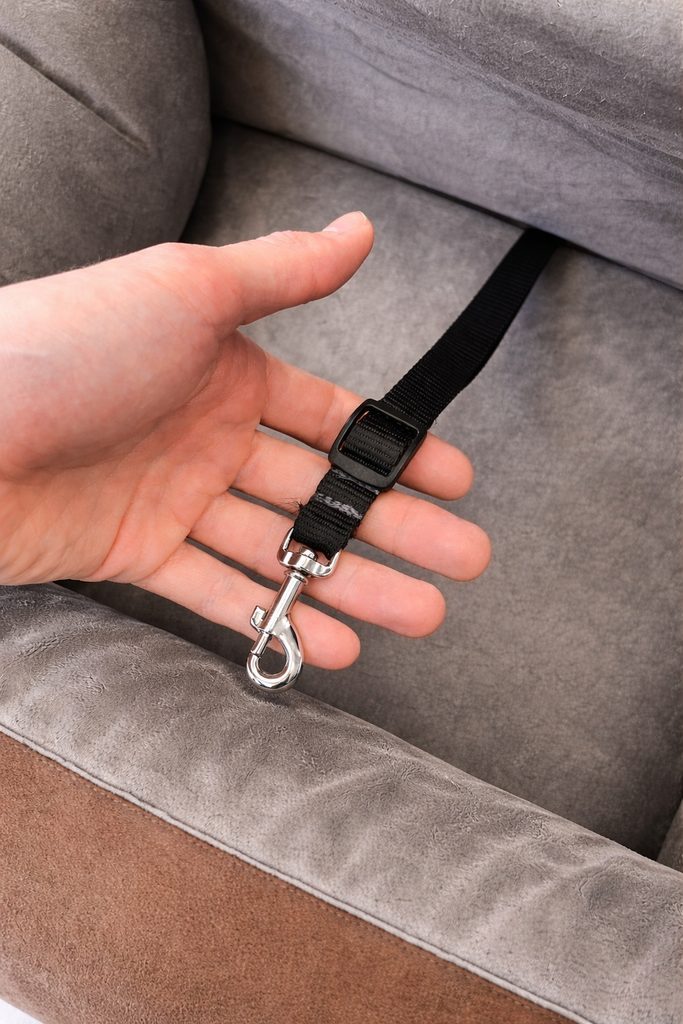 Co dělá tuto autosedačku unikátní? Jako u ostatních produktů Aminela je to především perfektní zpracování, kvalitní a příjemné materiály a funkčnost. Autosedačka je opatřena zadními popruhy, kterými lze provlíknout bezpečností pás. Zároveň je každá autosedačka vybavena v horní části dalším nastavitelným popruhem pro uchycení kolem opěrky hlavy na sedadle. Uvnitř autosedačky je všito nastavitelné vodítko s karabinou pro uchycení vašeho mazlíčka za postroj. Toto vodítko je opatřeno na jedné straně karabinou k uchycení psa a na druhé straně plastovou přezkou, pomocí které můžete celé vodítko od sedačky odepnout.