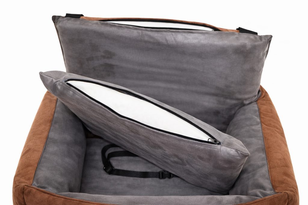 Maximální pohodlí pro vašeho mazlíčka, a to i na dlouhých cestách, zajistí kvalitní podložka, která je opatřena potahem na zip. Stejná podložka je i v zádech autosedačky a taktéž lze odepnout z potahu pomocí zipu. Zbylá část autosedačky je vyplněna 100% hypoalergenním dutým vláknem v přední a boční části.