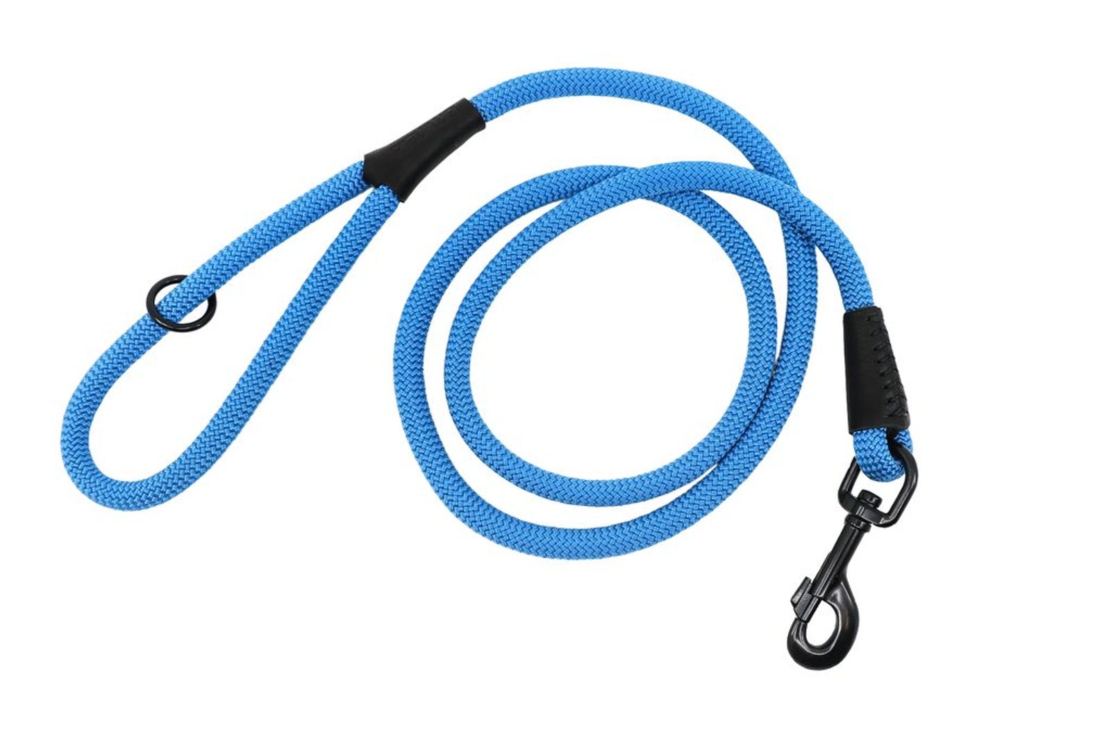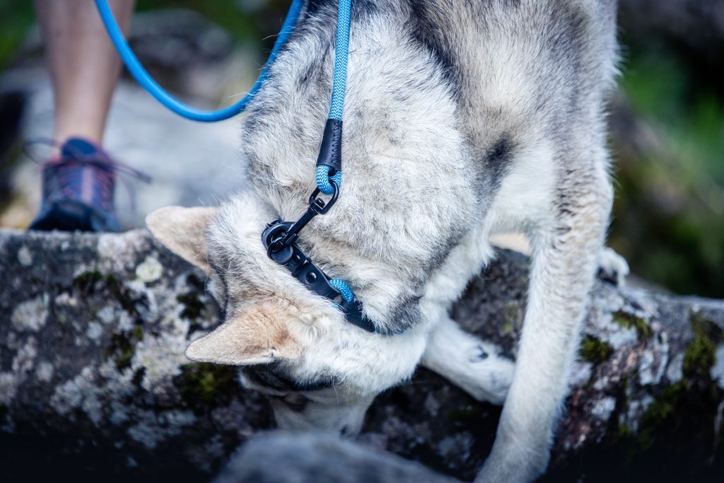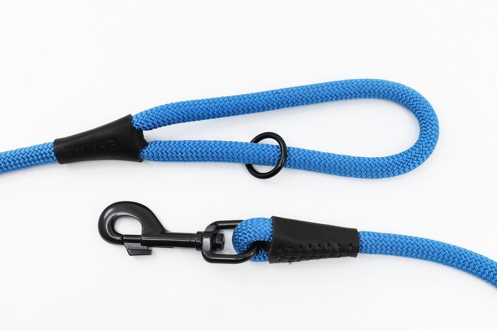 Ručně vyrobené vodítko z horolezeckého lana a pravé kůže s černým kováním