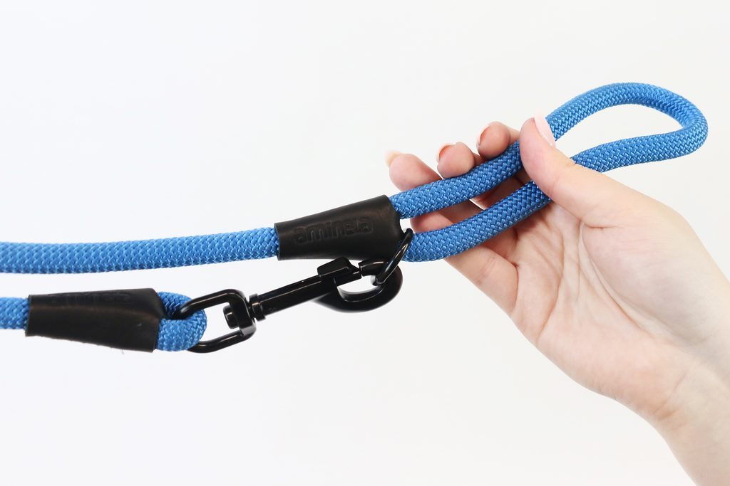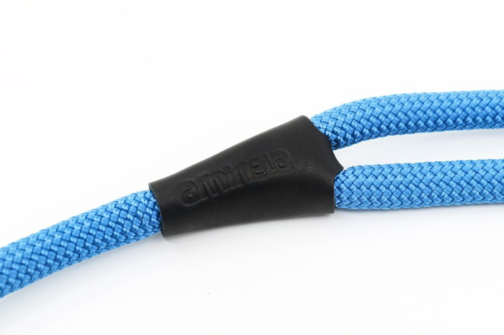 Aminela Vodítko lano s kůží černé kování modrá