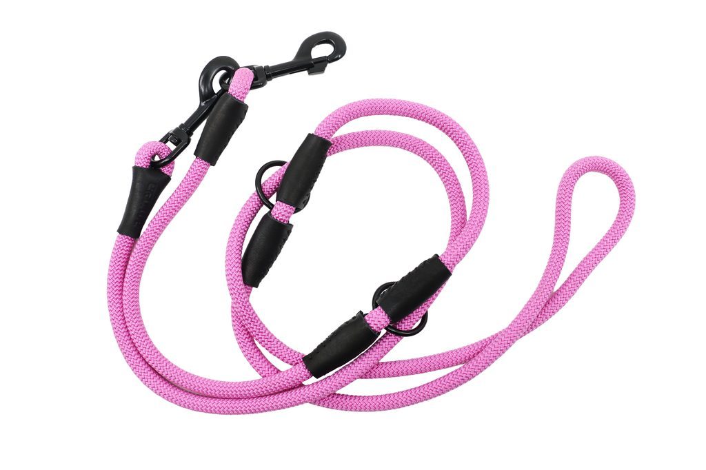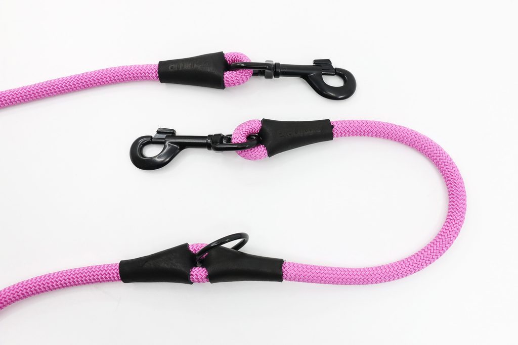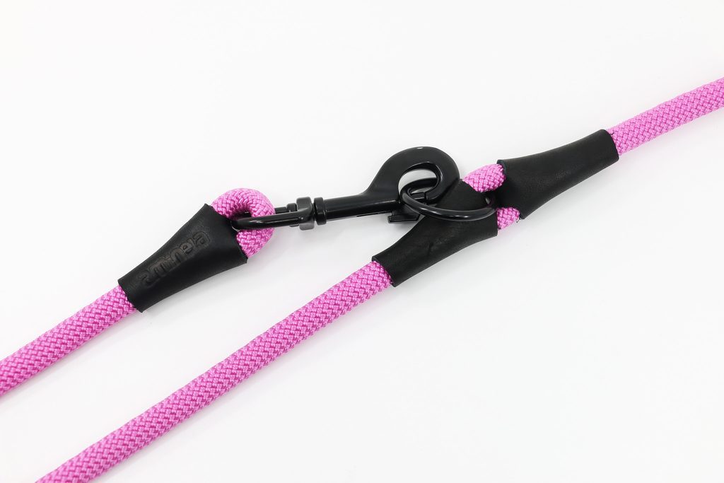 Ručně vyrobené přepínací vodítko z horolezeckého lana a pravé kůže s černým kováním