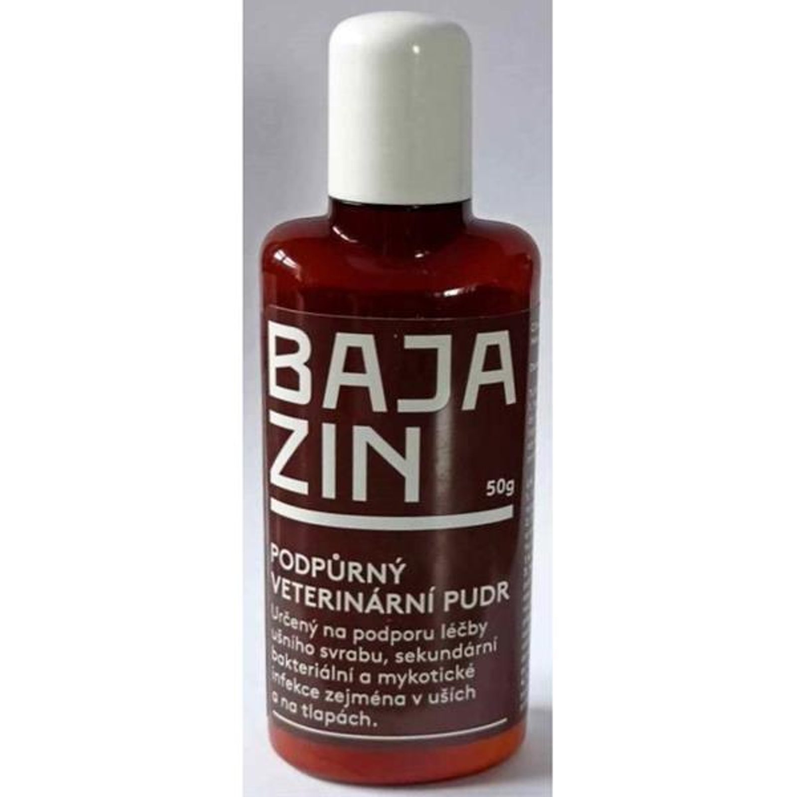 Bajazin 50g Bajazin 50g Bajazin je podpůrný přípravek určený pro opakované problémy uší, meziprstí a pokožky zvířete, které jsou způsobené bakteriemi, kvasinkami, svrabem a roztoči. Je vhodný pro léčbu psů, koček, koní, králíků i hlodavců. Nabízí účinné látky v koncentrovaném složení a pomáhá i tam, kde jiné preparáty často selhávají. Neobsahuje antibiotika, umělá barviva, parabeny ani silikony. U jeho opakovaného užívaní při více rezistentních či chronických potížích se nemusíte obávat zdravotních rizik. Snadno se aplikuje. Úleva od nepříjemných příznaků nemoci přichází již po 24 hodinách. Složení: kyselina boritá, oxid zinečnatý, jodoform. Bajazin by mohl zcela odstranit, nebo výrazně zmírnit tyto obtíže: výrazná svědivost v oblasti uší zápach uší nadměrná tvorba ušního mazu zarudnutí, úbytek srsti, srst zabarvená do rezava výrazná svědivost jiných částí těla (meziprstí tlapek, břišní a anální oblast). Kromě svých léčebných účinků usnadňuje Bajazin také depilaci uší, má stahující a zklidňující účinky. Balení 50 g je doplněno o aplikátor v hrdle lahvičky pro snadnější aplikaci přípravku. Dávkování a způsob užití: TLAPKY 1. Nasypte malé množství prášku do mikrotenového sáčku. 2. Vložte tlapku do sáčku a promněte ji tak, aby na ní prášek ulpěl. 3. Oklepejte přebytečný prášek a tlapu vyjměte. UŠI 1. Uši před aplikací prášku vytřete tamponem, vatou, vatovou tyčinkou. Před aplikací by ucho mělo být suché, takže nevyplachovat. 2. Nadzvedněte ušní boltec psa nebo kočky. Nasypte plastovou lžičkou malé množství prášku do vnějšího zvukovodu. (Na středně velkého psa cca na špičku lžičky na jedno ucho). 3. Masírujte vnější zvukovod přímo pod úrovní ušního boltce zvířete tak, aby se pudr dostal dovnitř ucha a zvíře ho nevyklepalo téměř celý bezprostředně po aplikaci. Aplikujte 1 krát denně. Pokud se v průběhu pěti dnů nedostaví zlepšení, zvyšte množství prášku, popřípadě ošetřujte uši ráno i večer. Stav uší po zlepšení ještě určitou dobu pravidelně kontrolujte. V případě, že obtíže znovu nastanou, zopakujte aplikaci prášku. Nepoužívat při známé přecitlivělosti na některou z obsažených látek. Zvláštní opatření pro osoby aplikující přípravek: po aplikaci si důkladně umyjte ruce. Zvláštní opatření pro zneškodňování nepoužitého přípravku nebo odpadů vzniklých v důsledku použití přípravku: zlikvidujte podle místních právních předpisů. Datum minimální trvanlivosti: 2 roky od data výroby. Uchovávejte pouze v původním a dobře uzavřeném obalu. Uchovávejte v suchu při teplotě do 25 °C. Chraňte před slunečním zářením. Uchovávejte mimo dosah dětí. Veterinární přípravek schválený dle zákona č. 166/1999 Sb. o veterinární péči pod číslem 024-15/C.