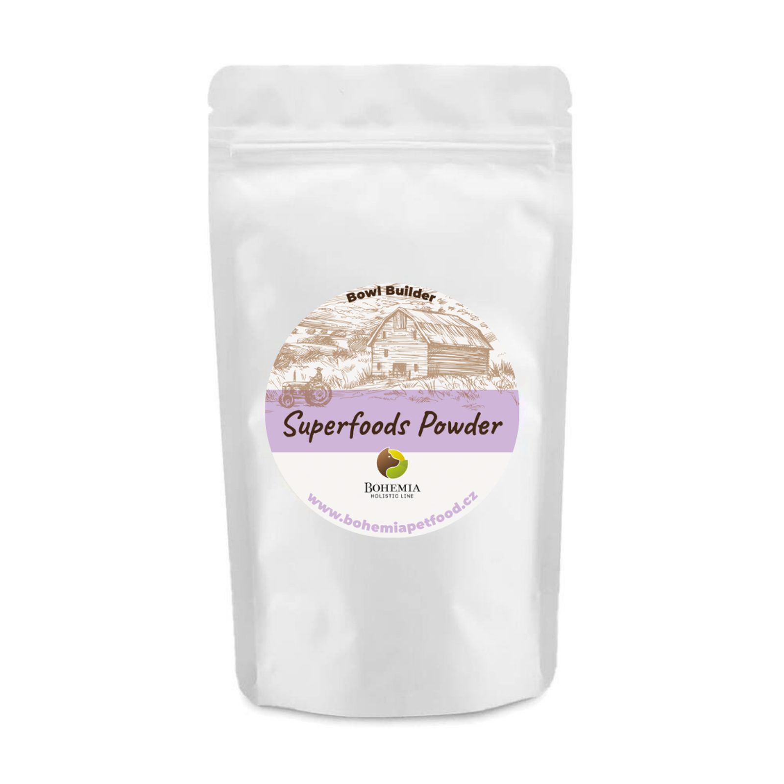 SUPERFOODS BOWEL BUILDER vylaďte si krmnou dávku jak po chuťové tak nutriční stránce. Komplexní doplněk stravy plný proteinů, vitamínů a minerálů.