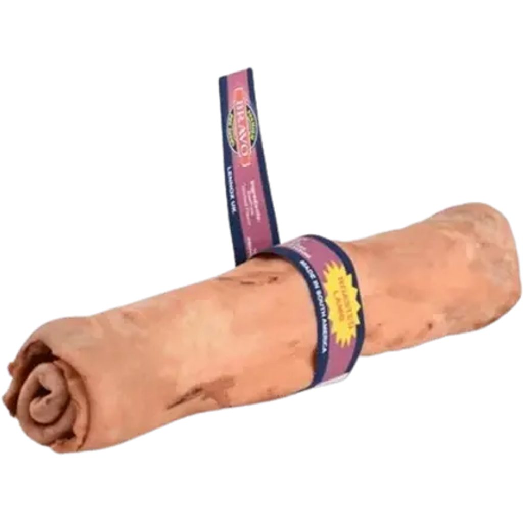 Rolka ze sušené hovězí kůže s příchutí jehněčí pečínky vyrobená v Jižní Americe Velikosti jednotlivých Bravo pamlsků se mohou mírně lišit, protože se jedná o přírodní, ručně vyráběný produkt. Žvýkací