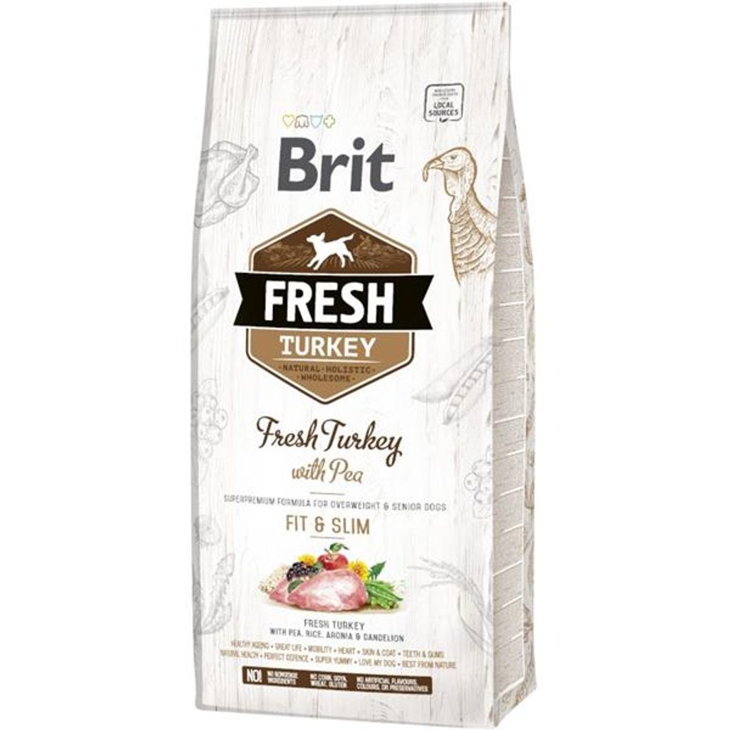 Brit Fresh Light Fit & Slim Turkey with Pea 12 kg Brit Fresh Light Fit & Slim Turkey with Pea 12 kg Superprémiové kompletní krmivo pro sedavé dospělé psy, psy s nadváhou a starší psy s krůtím masem a hráškem. Čerstvé krůtí maso s hráškem, rýží, arónií, pampeliškou. Holistické krmivo vyrobené šetrnou metodou s použitím 40 % čerstvého masa. V kostce: kontrola optimální váhy, péče o srdce, zuby, kůži a srst, zachování čerstvosti surovin, holistické složení, bez lepku, bez sóji, bez pšenice a kukuřice, bez barviv. Při přípravě Brit Fresh granulí jsme použili čerstvé maso a vynechali tak jeden krok jeho zpracování. Zachovali jsme tak přirozené výživové, a především chuťové vlastnosti masa a jeho vůni. Spolu s přílohami z původních zrnin jako je pohanka, proso či oves, tradiční byliny, dýně, cuketa a ovoce jsme vytvořili zdravé a delikátní menu. A to rozhodně potěší každého psího milovníka chuťově skvělé a zdravé výživy na vysoké úrovni. Hlavní přednosti: ideální pro dospělé psy s nadváhou a starší psy, lepší chuť a čerstvá vůně, lepší dlouhodobá chutnost, obsahuje původní zrniny a staré kulturní plodiny – brambory, oves, pohanka, lněné semínko, černý rybíz, tradiční byliny – tymián, rozmarýn, měsíček lékařský, pampeliška, petržel. Složení: čerstvý krocan (40 %), hrách (10 %), sušený krocan (10 %), rýže (8 %), kuřecí tuk (konzervovaný směsí tokoferolů), jablka, oves, pohanka, psyllium, celá cukrová řepa, lososový olej, pivovarské kvasnice, lněné semeno, kuřecí játra, kolagen, řasy, aronia (0,2 %), petržel, rozmarýn, tymián, měsíček lékařský, pampeliška (0,05 %), probiotika (Enterococcus faecium 1 × 109 CFU), glukosamin 1,700 mg/kg, chondroitin sulfat 1,300 mg/kg, frukto-oligosacharidy 220 mg/kg, ß-glucan 200 mg/kg, mannan-oligosacharidy 180 mg/kg, yucca 150 mg/kg, slávka zelenoústá 100 mg/kg. Analytické složky: hrubý protein 27 %, hrubé oleje a tuky 12 %, hrubá vláknina 5 %, hrubý popel 7,5 %, vlhkost 10 %, omega-3 0,7 %, omega-6 0,85 %, EPA (20:5 n3) 0,2 %, DHA (22:6 n3) 0,4 %, vápník 1,6 %, fosfor 1,1 %. Nutriční doplňkové látky na 1 kg: vitamín A (3a672a) 22 000 m.j., vitamín D3 (E671) 1 800 m.j., vitamín E (3a700) 600 mg, vitamín C (3a312) 500 mg, L-karnitin (3a910) 550 mg, cholinchlorid (3a890) 750 mg, biotin (3a880) 0,9 mg, vitamín B1 (3a821) 7 mg, vitamín B2 9 mg, niacinamid (3a315) 42 mg, D-pantothenat vápenatý (3a841) 22 mg, vitamín B6 (3a831) 8 mg, kyselina listová (3a316) 1 mg, vitamín B12 0,06 mg, chelát zinku a aminokyselin, hydrát (3b606) 120 mg, chelát železa aminokyselin hydrát (E1) 95 mg, chelát manganu aminokyselin hydrát (E5) 50 mg, jodid draselný (3b201) 0,9 mg, chelát mědi aminokyselin hydrát (E4) 20 mg, organická forma selenu, kterou produkují Saccharomyces cerevisiae CNCM I-3060 (inaktivované kvasinky obohacené selenem) (3b8.10) 0,2 mg, L-methionin (3c305) 180 mg. Obsahuje přírodní antioxidanty: tokoferolové extrakty z rostlinných olejů (1b306), askorbyl-palmitát (1b304) a rozmarýn. Metabolizovatelná energie: 3 460 kcal/kg. Krmný návod: Hmotnost psa Běžná aktivita Zvýšená aktivita 5 kg 70 g 80 g 10 kg 120 g 140 g 15 kg 160 g 180 g 20 kg 200 g 230 g 25 kg 240 g 270 g 30 kg 270 g 310 g 40 kg 340 g 380 g 50 kg 400 g 450 g 60 kg 450 g 520 g 70 kg 510 g 580 g 80 kg 560 g 640 g 90 kg 620 g 700 g Denní dávka se může lišit v závislosti na aktivitě a věku vašeho psa. Zajistěte vašemu psovi vždy dostatek čerstvé pitné vody.