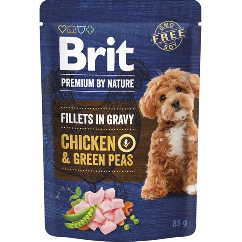 Brit Premium by Nature Dog kaps. Fillets in Gravy Chicken&Peas 85g Brit Premium by Nature Dog kaps. Fillets in Gravy Chicken&Peas 85g Kapsička Brit Premium by Nature s filetkami s kuřecím a hráškem v omáčce je vhodná pro psy všech plemen. Obsahuje 85 % filet s kvalitním masem pro podporu celkového zdraví a vitality. Kuřecí maso je vysoce stravitelné a nutričně bohaté. Zelený hrášek je bohatý na vitamíny A, K a C, minerály a vlákninu. Podporuje trávení, posiluje imunitní systém a dodává energii. Hlavní přednosti kapsičky: vysoký obsah masa: 85 % masových filet, bez GMO, sóji a přidaného cukru, podpora trávení a hydratace, zdroj esenciálních aminokyselin: lysin, treonin, tryptofan. Složení: 85 % maso a živočišné produkty ve filetech (75 % kuře), vedlejší produkty rostlinného původu (4 % zelený hrášek), minerály. Analytické složky: hrubý protein 7,5 %, hrubý tuk 3,5 %, hrubý popel 1,5 %, hrubá vláknina 0,8 %, vlhkost 82 %, vápník 0,2 %, fosfor 0,15 %, sodík 0,3 %. Nutriční doplňkové látky v 1 kg: vitamín A (3a672a) 500 MJ, vitamín D3 (3a671) 100?MJ, vitamín E (3a700) 50 mg, cholinchlorid (3a890) 600?mg, vitamín B1 (3a821) 0,3 mg, biotin (3a880) 0,15?mg, kyselina listová (3a316) 0,08 mg, D-pantothenát vápenatý (3a841)?1,2 mg, zinek (3b612) 3,5 mg, mangan (3b505) 0,7 mg, jodid draselný (3b201) 0,15 mg, železo (3b107) 2,4 mg, měď (3b407) 0,5 mg. Metabolizovatelná energie: 755 kcal/kg Dávkování: hmotnost psa 1–10 kg (S) 10–25 kg (M) 25+ kg (L) doporučená denní dávka 2–10 ks 10–19 ks 19+ ks Údaje uvedené v tabulce jsou pouze orientační. Krmnou dávku upravujte dle individuálních potřeb zvířete. Zvíře by mělo mít neustále k dispozici čerstvou pitnou vodu.