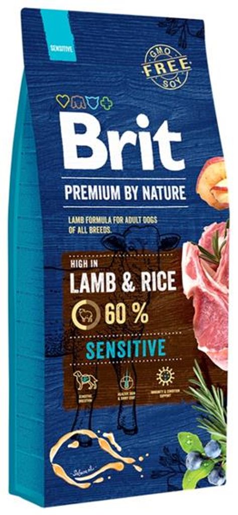 Brit Premium by Nature Dog Sensitive Lamb 15 kg Brit Premium by Nature Dog Sensitive Lamb 1 kg Prémiová receptura s jehněčím masem pro dospělé psy s citlivým zažíváním. Krmivo, které respektuje různorodost plemen s vysokým podílem masa z vykostěného a sušeného kuřete, zajistí vyšší chutnost a lepší stravitelnost. Oves, starobylá obilovina bez lepku, je bohatý zdroj energie, nezpůsobuje alergie a zajišťuje skvělou snášenlivost krmiva. Receptura je obohacena o lososový olej, ovoce a bylinky. V kostce: zdravá kůže a srst, výborná stravitelnost, bez rizika alergie, imunita a kondice. Hlavní přednosti: lepší chuť a stravitelnost – vysoký podíl vykostěného a sušeného kuřete v každém balení zajistí vyšší chutnost a lepší stravitelnost krmiva, maso je pro naše psy nejlepším přírodním zdrojem vysoce stravitelné bílkoviny, důležité pro zdraví svalů a tkání, kolagen, slávka zelenoústá a schránky korýšů na klouby a chrupavky – přírodní zdroj chondroprotektiv pro zdravé klouby, chrupavky a šlachy, lososový olej, vysoká hladina omega-3 pro zdravé srdce, zdravou kůži a lesklou srst – 2 % přidaného lososového oleje v každém balení, lososový olej je přírodním zdrojem omega-3 masných kyselin pro zdravou kůži, lesklou a hustou srst a působí preventivně proti kardiovaskulárním nemocem, ovoce a byliny pro dobré trávení a imunitu – díky obsaženému ovoci a bylinkám jako jsou heřmánek, hřebíček, citrusy, rozmarýn, kurkuma a sušené borůvky, je zajištěna přírodní podpora imunity a skvělé trávení. Složení: jehně 35 % (dehydrované 20 %, vykostěné 15 %), rýže, kuřecí tuk (konzervovaný směsí tokoferolů), rýžové otruby, sušená jablka, lososový olej (2 %), hydrolyzovaná kuřecí játra, pivovarské kvasnice, kolagen, ulity korýšů (zdroj glukosaminu, 210 mg/kg), chrupavky (zdroj chondroitinu, 150 mg/kg), byliny a ovoce (hřebíček, citrusy, rozmarýn, kurkuma, 120 mg/kg), mannan-oligosacharidy (120 mg/kg), fruktooligosacharidy (90 mg/kg), juka mohave (90 mg/kg), sušený heřmánek (80 mg/kg), slávka zelenoústá (zdroj glycosaminoglykanů, 50 mg/kg), sušené borůvky (50 mg/kg). Analytické složky: hrubý protein 26 %, obsah tuku 13 %, vlhkost 10 %, hrubý popel 7 %, hrubá vláknina 3 %, vápník 1,6 %, fosfor 1,1 %, omega-3 0,2 %, omega-6 1,5 %. Nutriční doplňkové látky na 1 kg: vitamín A (3a672a) 15 000 m.j., vitamín D3 (E671) 1 000 m.j., vitamín E (?-tokoferol) (3a700) 400 mg, biotin (3a880) 0,5 mg, cholinchlorid (3a890) 500 mg, chelát zinku a aminokyselin, hydrát (3b606) 70 mg, chelát železa aminokyselin hydrát (E1) 60 mg, chelát manganu aminokyselin hydrát (E5) 30 mg, jodid draselný (3b201) 0,5 mg, chelát mědi aminokyselin hydrát (E4) 12 mg, organická forma selenu, kterou produkují Saccharomyces cerevisiae CNCM I-3060 (3b8.10) 0,2 mg. Obsahuje antioxidanty schválené EU: tokoferolové extrakty z rostlinných olejů (1b306), askorbyl-palmitát (1b304) a výtažek z rozmarýnu. Metabolizovatelná energie: 3 660 kcal/kg. Krmný návod: Hmotnost psa Denní dávka 5 kg 75 g 10 kg 120 g 15 kg 170 g 20 kg 200 g 25 kg 250 g 30 kg 280 g 40 kg 340 g 50 kg 400 g 60 kg 460 g 70 kg 520 g 80 kg 570 g 90 kg 630 g