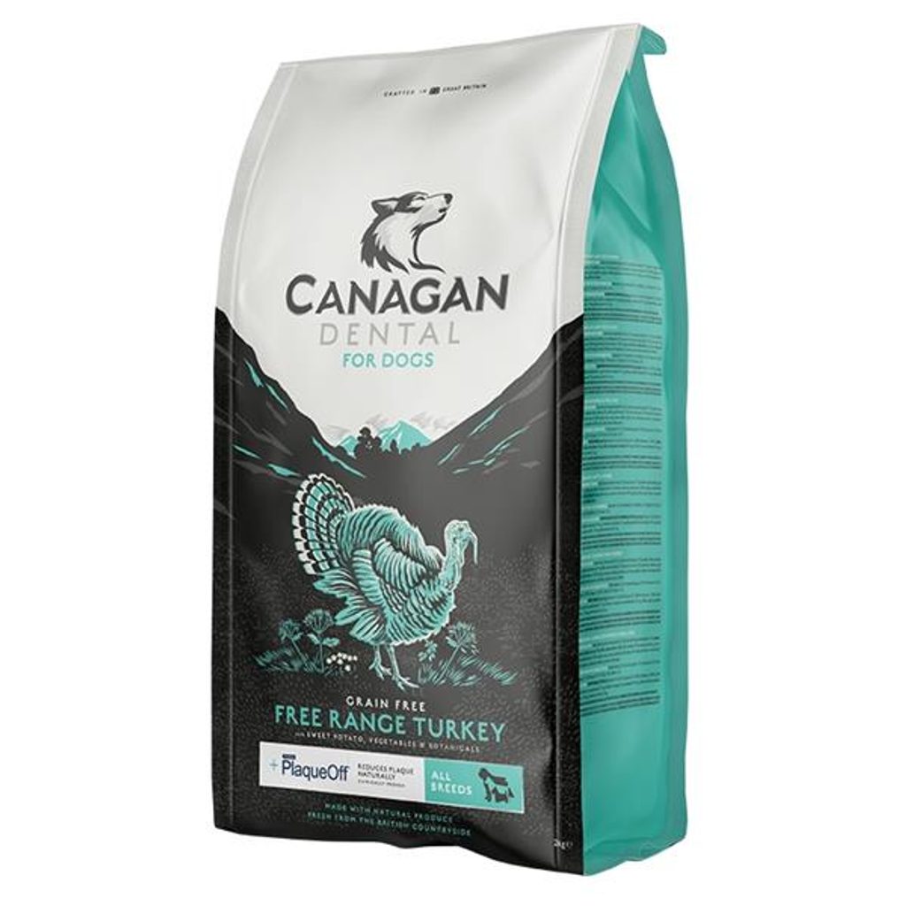 Canagan Dog Dry Dental 2 kg Canagan Dog Dry Dental 12 kg Kompletní krmivo pro psy Canagan Dental je pečlivě připravená bezobilná receptura, jejíž hlavní složku tvoří krůtí maso. Speciální složka ProDen PlaqueOff® pomáhá přirozeně snižovat tvorbu zubního plaku (do slin uvolňuje přírodní složky, které rozkládají bakteriální povlak na zubech, na němž se usazuje zubní plak). Je vyroben z mořských řas získávaných podél severoatlantického pobřeží. Speciální robustnější tvar granulí a extra křupavá konzistence pomáhají udržovat zuby pěkné a čisté. Onemocnění dásní se v současné době vyskytuje u více než dvou třetin psů, může být velmi bolestivé a následně i vést ke ztrátě zubů. Díky této receptuře můžete uvedeným nepříjemnostem u vašeho psa předejít. *Nedoporučujeme podávat březím, kojícím fenám nebo psům léčeným s onemocněním štítné žlázy. Živočišné suroviny tvoří 60 % a zelenina s bylinkami 40 %. Krmiva Canagan nabízejí kvalitu bez kompromisů: - vysoký podíl čerstvého masa - maso je pouze z volných chovů - všechny receptury zcela bez obilovin - pro psy ve všech životních stádiích Po celé věky se člověk a pes vyvíjeli bok po boku; společně žili, společně lovili a v jedinečném spojenectví chránili jeden druhého. Krmivo Canagan, pojmenované po starém keltském výrazu pro vlka, bylo vytvořeno jako pocta tomuto poutu. Canagan vašim zvířecím společníkům poskytuje biologicky hodnotné živiny s ideálním poměrem živočišných a rostlinných bílkovin, s bonusem v podobě prospěšných bylin. Psi jsou masožravci, a proto velkou část svých nutričních potřeb pokrývají živočišnými zdroji. Menší místo v jejich jídelníčku zaujímá ovoce a zelenina. Canagan se přesně drží tohoto poměru, a tak je pro psy mnohem lépe nutričně využitelný. Složení: čerstvě připravené krůtí maso (26 %), sušené kuřecí maso (25 %), batáty (sladké brambory), brambory, hrách, kuřecí tuk (4 %), vojtěška, sušená vejce (3,1 %), hrachový protein, šťáva z kuřecího masa (1,6 %), lososový olej (1,2 %), minerální látky, ProDen PlaqueOff (2500 mg/kg), glukosamin (1000 mg/kg), MSM (1000 mg/kg), fruktooligosacharidy, chondroitin sulfát (700 mg/kg), máta, petržel, jablko, mrkev, špenát, psyllium, mořské řasy, heřmánek, měsíček, brusinky, anýz, pískavice (řecké seno). Analytické složky: hrubý protein 33,0 %, obsah tuku 16,0 %, hrubý popel 9,5 %, hrubá vláknina 4,0 %, vlhkost 8,0 %, omega-6 mastné kyseliny 3,0 %, omega-3 mastné kys. 0,7 %, vápník 1,8 %, fosfor 1,3 %. Doplňkové látky: Nutriční doplňkové látky (na 1 kg): vitamín A (3a672a) 16230 MJ, vitamín D3 (3a671) 1980 MJ, vitamín E (3a700) 240 MJ, taurin (3a370) 1500 mg, železo (síran železnatý monohydrát 3b103) 192 mg, zinek (síran zinečnatý monohydrát 3b605) 144 mg, mangan (síran manganatý monohydrát 3b503) 45 mg, měď (síran měďnatý pentahydrát 3b405) 14 mg, jód (jodičnan vápenatý bezvodý 3b202) 1,9 mg, selen (seleničitan sodný 3b801) 0,17 mg. Dávkování: Doporučená denní krmná dávka hmotnost psa v dospělosti věk štěněte 2-3 měsíce 4-5 měsíců 6-7 měsíců 8-9 měsíců 10-11 měsíců 12-13 měsíců 14-15 měsíců 16-17 měsíců 1-5 kg 65 g 85 g 90 g 85 g 65 g Adult Adult Adult 5-10 kg 145 g 165 g 180 g 165 g 145 g Adult Adult Adult 10-25 kg 215 g 235 g 255 g 255 g 235 g 215 g Adult Adult 25-45 kg 375 g 395 g 415 g 430 g 415 g 395 g 375 g Adult Doporučená denní krmná dávka hmotnost psa udržovací množství při tréninku (více než 1 hod denně) 5 kg 80 g 100 g 10 kg 120 g 150 g 15 kg 150 g 190 g 20 kg 200 g 240 g 30 kg 290 g 350 g 40 kg 370 g 420 g 50 kg 450 g 540 g Doporučené krmné dávky jsou pouze orientační, podávané množství krmiva je třeba přizpůsobit věku, aktivitě, prostředí i kondici vašeho psa. Canagan může být zaváděn v době odstavu, nejlépe zalitý vodou. Mezi 5-6 týdnem pomalu přecházejte na suché granule. Pes musí mít vždy přístup k čisté a čerstvé vodě....]]>