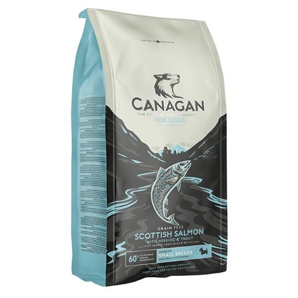 Canagan Dog Dry Small Breed Scottish Salmon 2 kg Canagan Dog Dry Small Breed Scottish Salmon 2 kg Kompletní krmivo pro psy Canagan Small Breed Scottish Salmon je nová receptura s malými granulkami určenými speciálně pro malá plemena psů. Pečlivě připravená bezobilná receptura kombinuje maso několika druhů ryb - čerstvě připravený vykostěný losos je doplněn o sledě, pstruhy a bělomasé mořské ryby a všechny jsou zpracovávány podle standardů platných pro lidské potraviny. Canagan Small Breed Scottish Salmon se sníženým obsahem sacharidů představuje jedinečnou recepturu s biologicky snadno dostupnými bílkovinami. Živočišné suroviny tvoří 60 % a zelenina s bylinkami 40 %. Krmiva Canagan nabízejí kvalitu bez kompromisů: - vysoký podíl čerstvého masa - maso je pouze z volných chovů - všechny receptury zcela bez obilovin - pro psy ve všech životních stádiích Po celé věky se člověk a pes vyvíjeli bok po boku; společně žili, společně lovili a v jedinečném spojenectví chránili jeden druhého. Krmivo Canagan, pojmenované po starém keltském výrazu pro vlka, bylo vytvořeno jako pocta tomuto poutu. Canagan vašim zvířecím společníkům poskytuje biologicky hodnotné živiny s ideálním poměrem živočišných a rostlinných bílkovin, s bonusem v podobě prospěšných bylin. Psi jsou masožravci, a proto velkou část svých nutričních potřeb pokrývají živočišnými zdroji. Menší místo v jejich jídelníčku zaujímá ovoce a zelenina. Canagan se přesně drží tohoto poměru, a tak je pro psy mnohem lépe nutričně využitelný. Složení: čerstvě připravený skotský losos (26 %), batáty (sladké brambory), sušený losos (10 %), sušený sleď (8 %), hrách, brambory, sušená bílá ryba (5,5 %), lososový olej (5 %), vojtěška, čerstvě připravený pstruh (4 %), slunečnicový olej, šťáva z masa z lososa (1,5 %), minerální látky, jablko, mrkev, špenát, mořské řasy, fruktooligosacharidy, psyllium, heřmánek, máta, měsíček, brusinky, anýz, pískavice (řecké seno). Analytické složky: hrubý protein 33,0 %, obsah tuku 14,0 %, hrubý popel 9,0 %, hrubá vláknina 3,0 %, vlhkost 8 %, omega-6 mastné kyseliny 0,9 %, omega-3 mastné kyseliny 2,0 %, vápník 1,8 %, fosfor 1,2 %. Doplňkové látky: Nutriční doplňkové látky (na 1 kg): vitamín A (3a672a) 16230 MJ, vitamín D3 (3a671) 1500 MJ, vitamín E (3a700) 240 MJ, taurin (3a370) 1500 mg, železo (síran železnatý monohydrát 3b103) 192 mg, zinek (síran zinečnatý monohydrát 3b605) 144 mg, mangan (síran manganatý monohydrát 3b503) 45 mg, měď (síran měďnatý pentahydrát 3b405) 5 mg, jód (jodičnan vápenatý bezvodý 3b202) 1,9 mg. Dávkování: Doporučená denní krmná dávka hmotnost psa v dospělosti věk štěněte 2-3 měsíce 4-5 měsíců 6-7 měsíců 8-9 měsíců 10-11 měsíců 12-13 měsíců 14-15 měsíců 1-5 kg 65 g 85 g 90 g 85 g 65 g Adult Adult 5-10 kg 145 g 165 g 180 g 165 g 145 g Adult Adult 10-25 kg 215 g 235 g 255 g 255 g 235 g 215 g Adult Doporučená denní krmná dávka hmotnost psa množství udržovací množství při vyšší aktivitě 3 kg 50 g 65 g 5 kg 80 g 100 g 7 kg 100 g 120 g 10 kg 120 g 150 g