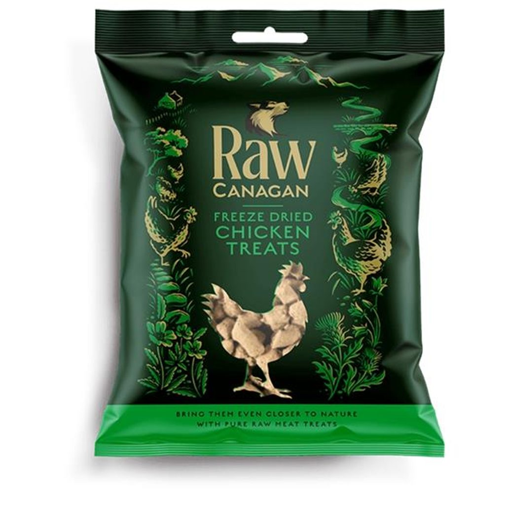 Canagan Raw Dog Chicken Treats 20g Canagan Raw Dog Chicken Treats 20g Pamlsky Canagan Raw Freeze Dried Chicken obsahují 99 % kuřecího z volného chovu. Lyofilizované (mrazem sušené) špalíčky si zachovávají plnou chuť a cenné živiny, takže se skvěle hodí k odměňování dospělých psů i štěňat včetně těch s citlivým trávením. Hlavní přednosti: mrazem sušené pro zachování chuti a živin, 100% přírodní složení bez obilovin (grain-free), konzervantů a umělých přísad, ideální odměna pro dospělé psy i štěňata. Složení: 99 % kuře z volného chovu, směs tokoferolů. Analytické složky: hrubý protein 39 %, hrubý tuk 28 %, hrubý popel 7 %, vlhkost 3 %, hrubá vláknina 2,5 %. Dávkování: Podávejte jako odměnu nebo pamlsek – až 5 ks denně na 10 kg tělesné hmotnosti psa. Psovi zajistěte stálý přístup k čerstvé pitné vodě.