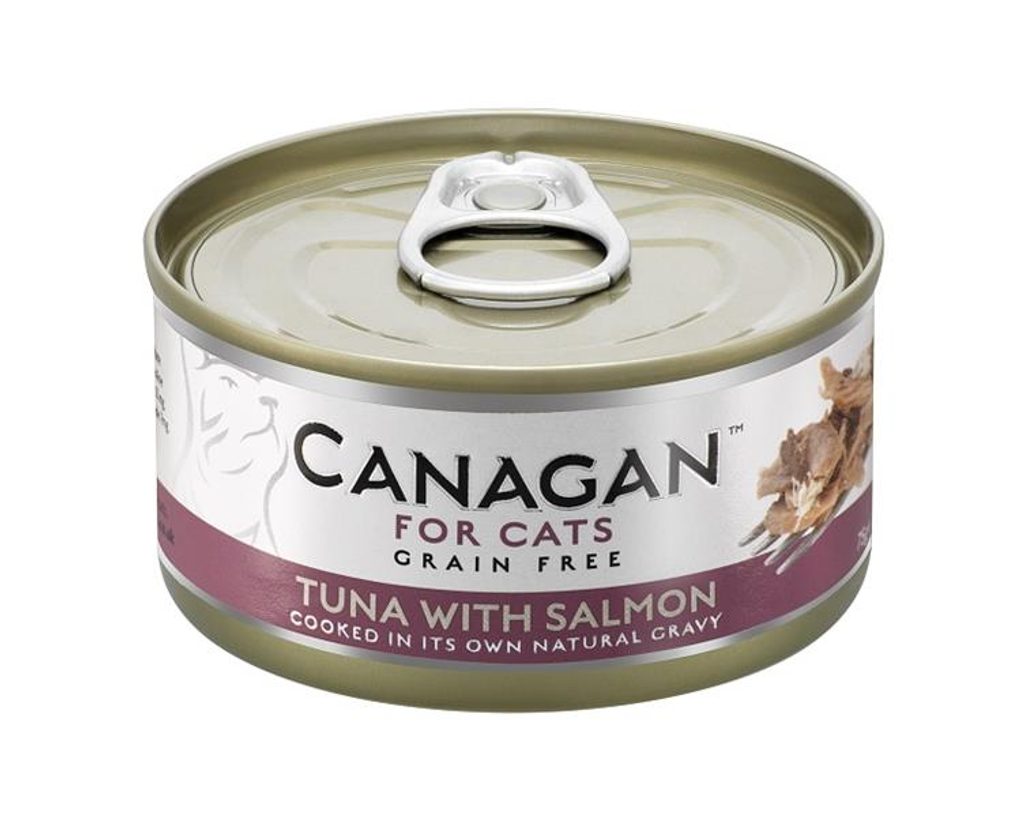 Canagan Cat konz. - Tuňák a Losos 75 g Canagan Cat konz. - Tuňák a Losos 75 g Canagan Cat Tuna with Salmon – je kompletní krmivo pro kočky. Vyrobené je z masa z tuňáků, kteří jsou volně lovení metodou šetrného odchytu na udici. Tuňáka doplňují lahodné kousky lososa - vše je šetrně vařené ve vlastní šťávě pro zachování vysoké výživové hodnoty krmiva. Stejně jako v ostatních výrobcích značky Canagan, ani v těchto konzervách pro kočky nenajdete žádné obiloviny. Konzervu můžete Vaší kočce podávat samostatně nebo v kombinaci s granulemi, nezapomeňte však upravit podávané množství. Složení: Maso z tuňáka (58 %), vývar z tuňáka (32 %), losos (5 %), maniok, slunečnicový olej, vitamíny a minerály. Nutriční doplň.látky (kg): taurin 646 mg, trikalcium fosfát 4078 mg, síran zinečnatý 323 mg, cholin chlorid 582 mg, síran železnatý 55 mg, vitamin A 10338 m.j., jodid draselný 7 mg, síran manganatý 7 mg, síran měďnatý 7 mg, vitamin D3 1938 m.j. Analytické složky: Vlhkost 77 %, hrubý protein 18 %, obsah tuku 2 %, hrubý popel 1,5 %, hrubá vláknina 0,1 %. Dávkování: 2-3 konzervy jsou optimální pro průměrnou kočku. Koťata, březí a kojící kočky mohou potřebovat více krmiva. Doporučené krmné dávky jsou pouze orientační, podávané množství krmiva je třeba přizpůsobit věku, aktivitě, prostředí i kondici vaší kočky. Kočka musí mít vždy přístup k čisté a čerstvé vodě.