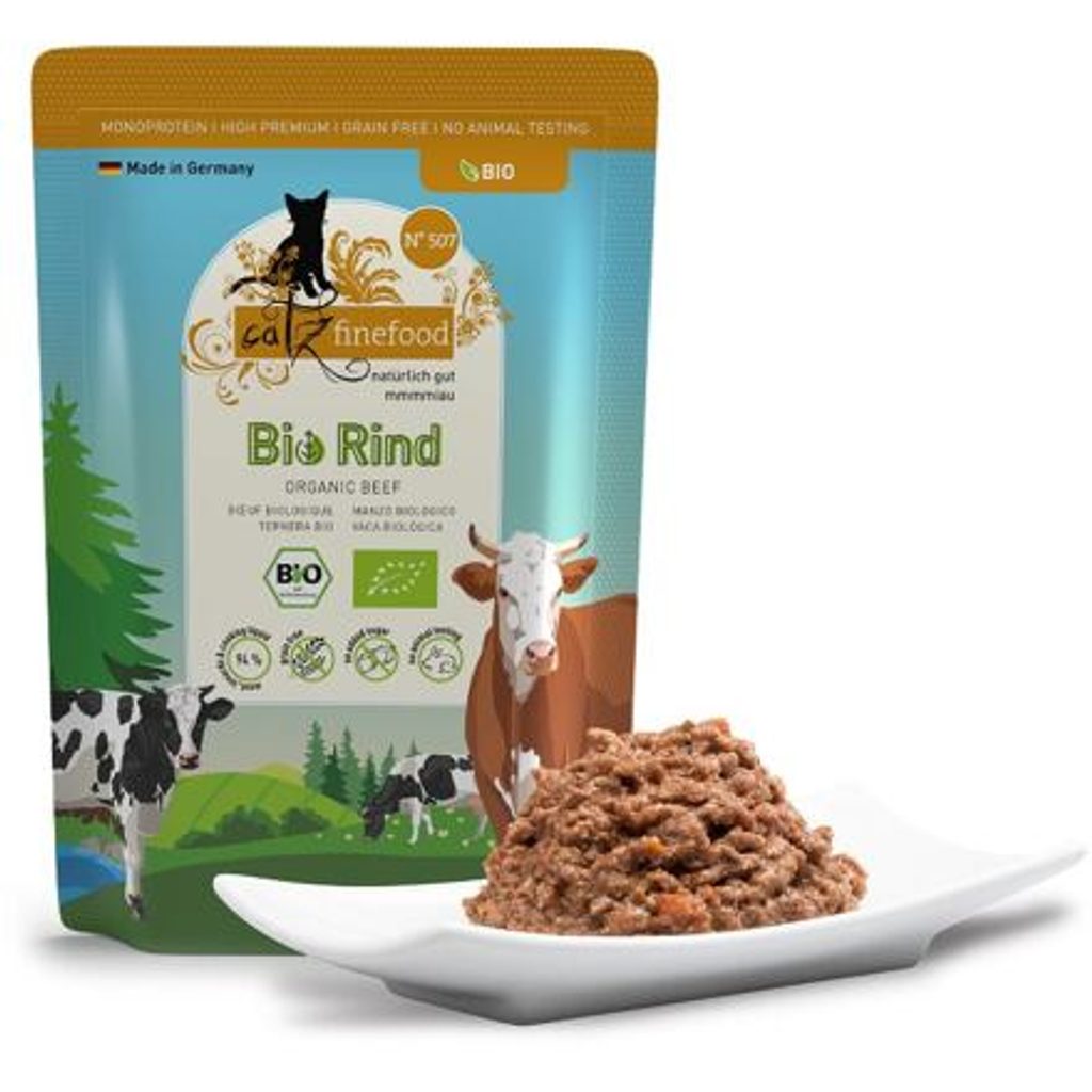 Kompletní monoproteinové krmivo v bio kvalitě. Obsahuje vysoký podíl hovězího masa, mrkev, sýr bez laktózy a lososový olej. Kompletní