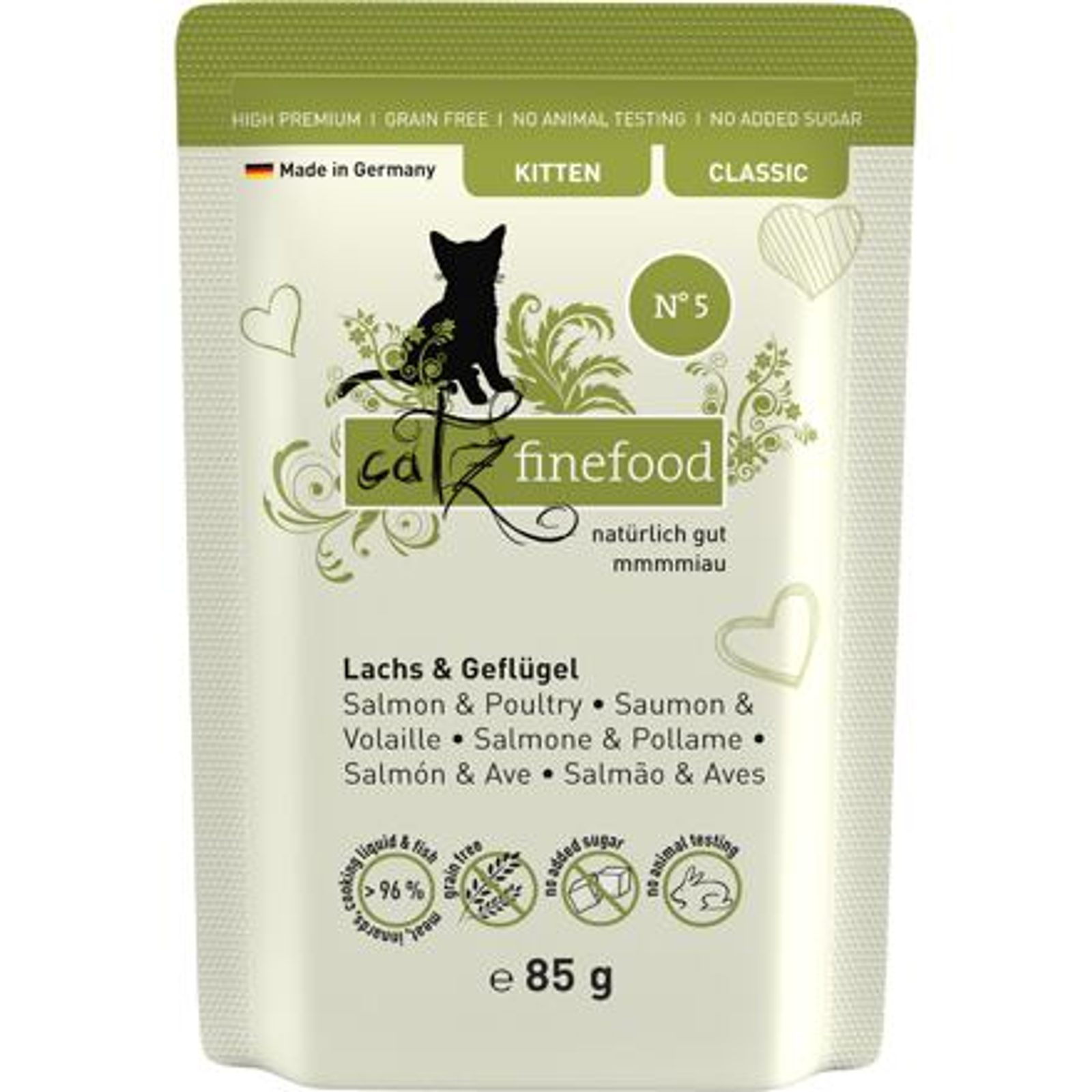 Kompletní krmivo pro koťata s lososem, drůbežím masem, špenátem a rajčaty. Ideální složení pro zdravý vývoj a růst koťat všech plemen. Vhodné i pro kočky s citlivým zažíváním nebo pro březí a kojící dospělé kočky. Jemné