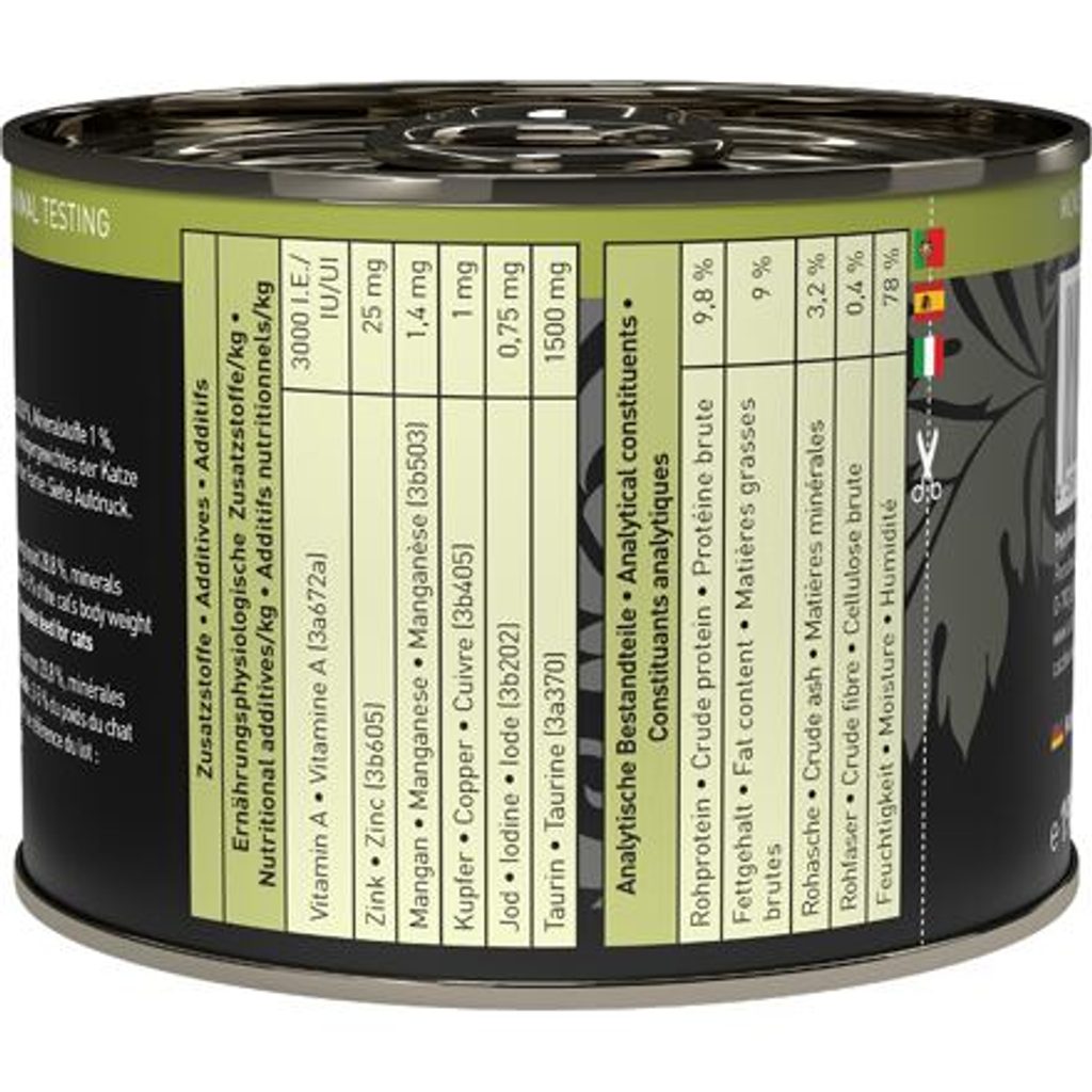 Lahodná monoproteinová konzerva pro kočky, která obsahuje pouze maso z lososa, vývar, minerální látky a konopný olej. Konzerva je tak vhodná i pro kočky s citlivým zažíváním nebo pro alergické kočky. Můžete objednávat po 1 kuse. Obchodní balení 6 ks. Lahodná
