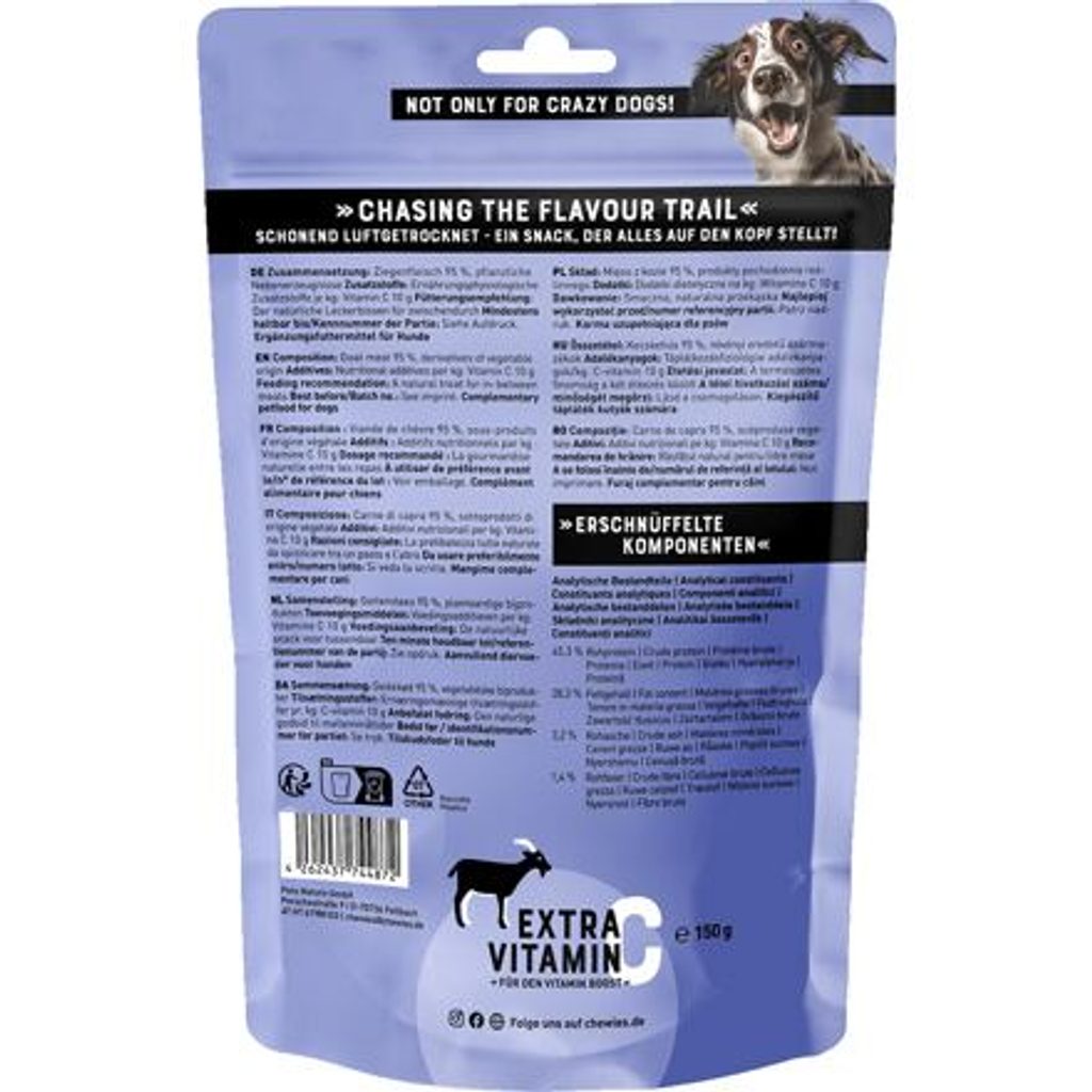 Sušené plátky kozího masa s vitamínem C – přírodní monoproteinové pamlsky, které se snadno porcují, neobsahují obiloviny, přidaný cukr ani…