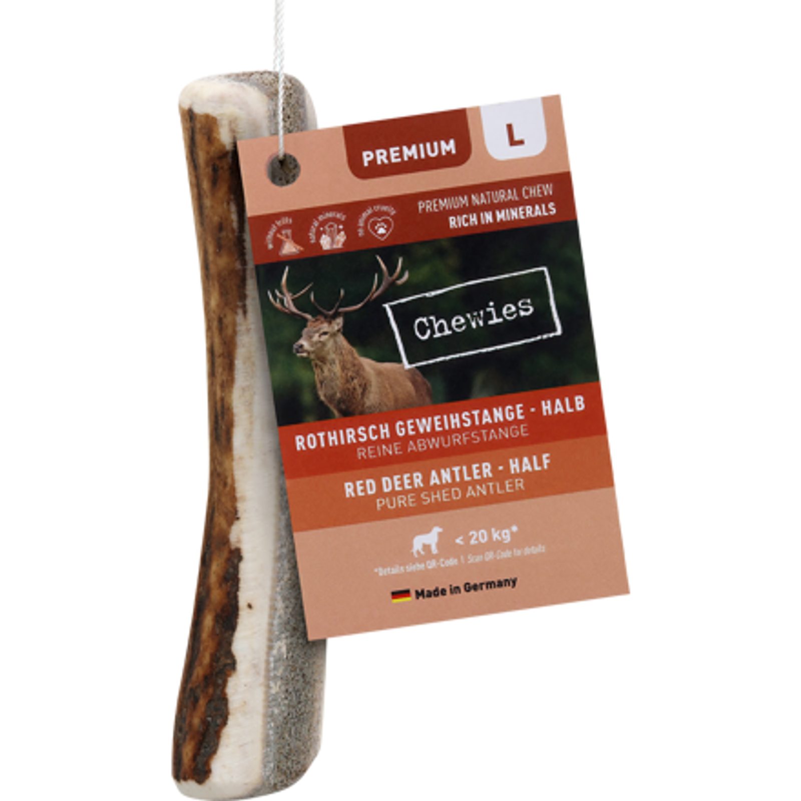 Stoprocentně čisté shozené jelení paroží vhodné jako žvýkací pamlsek k čištění zubů psa, k uspokojení potřeby žvýkání a pudu hravosti psa. Paroží je rozpůlené a chutné jádro je tak lépe dostupné. Vhodné pro mladé psy, psí seniory a psy s menší sílou. Stoprocentně