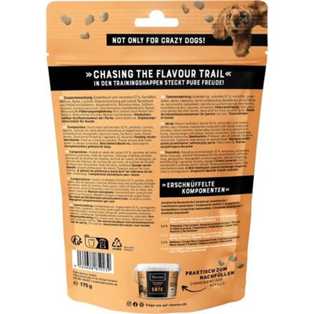 Poloměkké monoproteinové mini kousky s kachním masem, zeleninou, ovocem, bylinkami a lososovým olejem. Drobné pamlsky ideální na trénink a…