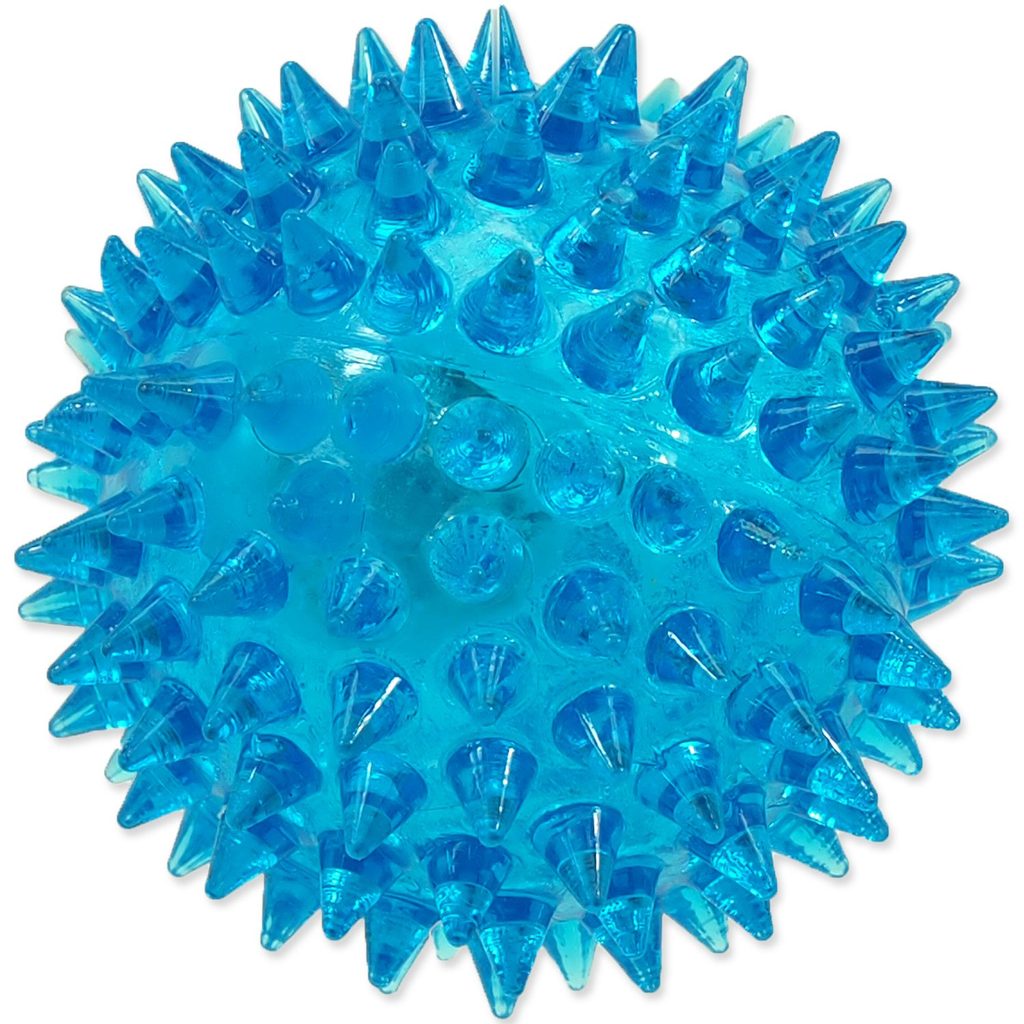 Hračka Dog Fantasy míček LED modrý 6cm Gumový míček s bodlinami a blikajícím světlem. Průměr: 6 cm.