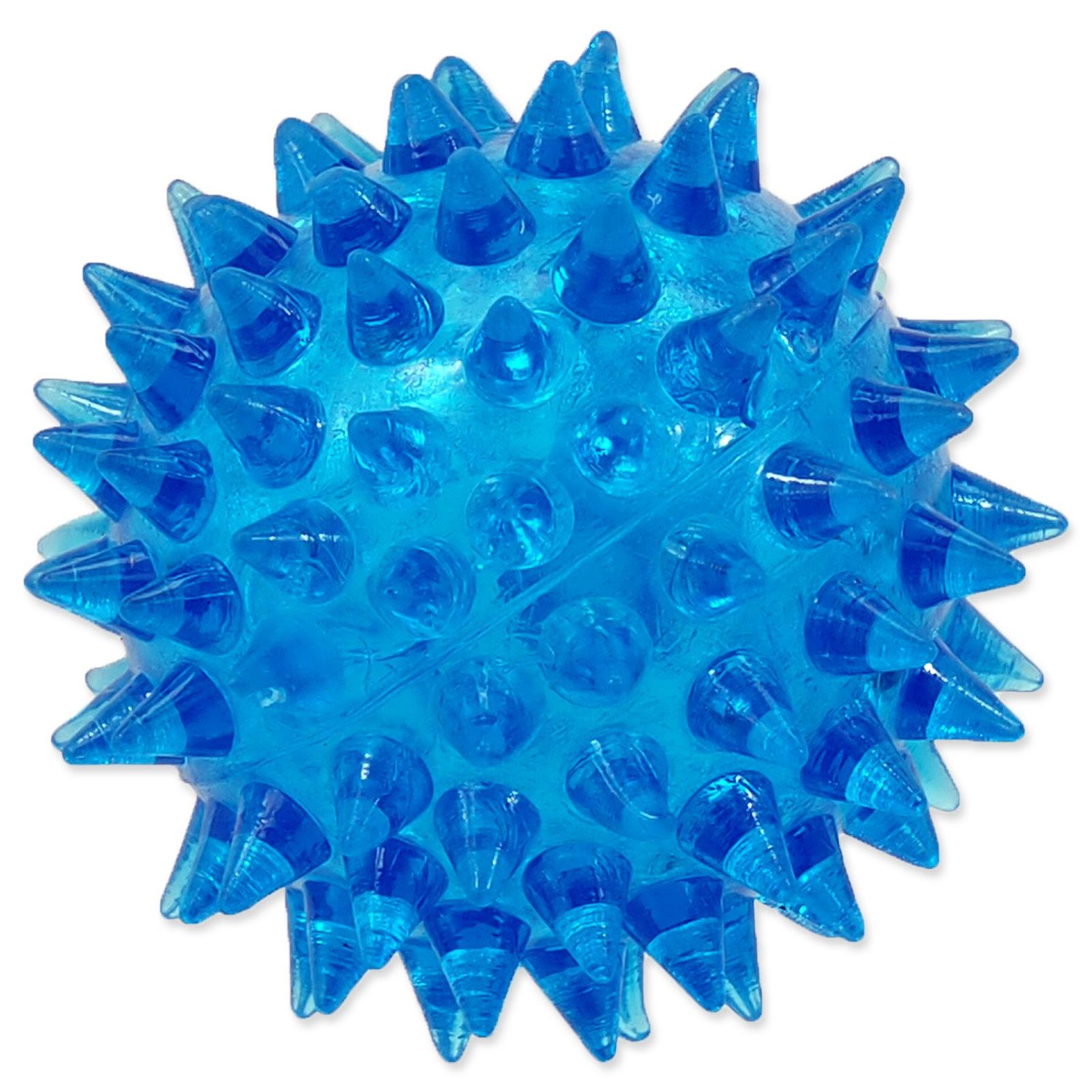 Hračka Dog Fantasy míček pískací modrý 5cm Gumový míček s bodlinami a zvukem. Průměr: 5 cm.