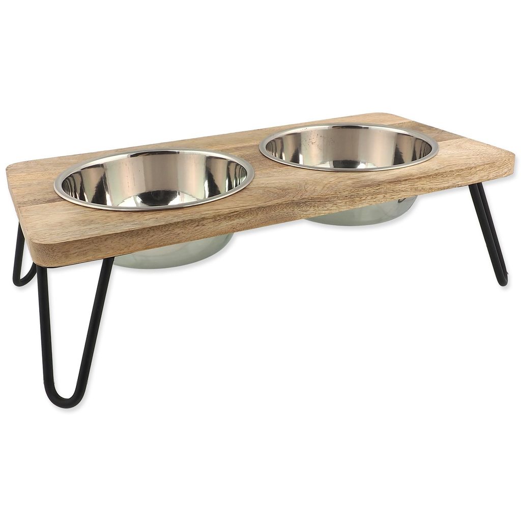 Misky Dog Fantasy nerez s dřevěným stojánkem, železné nohy 2x850ml