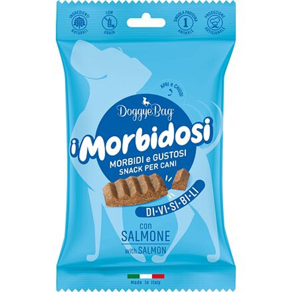Monoproteinové pamlsky s lososem, ručně vyráběné v Itálii z čerstvých surovin prvotřídní kvality. Neobsahují lepek, umělá barviva ani dochucovadla. Jsou měkké, lehce se dělí a hodí se tak nejen na trénink. Vhodné pro psy všech velikostí a věkových kategorií. Pamlsky