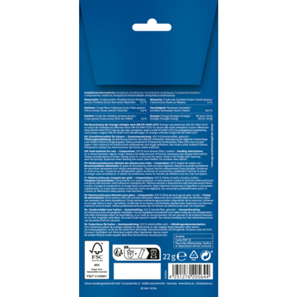 Filet z kachních prsíček, na kterém si pochutnají i kočky s citlivým zažíváním. 100 % přírodní, zdravý a chutný pamlsek. Šťavnatý