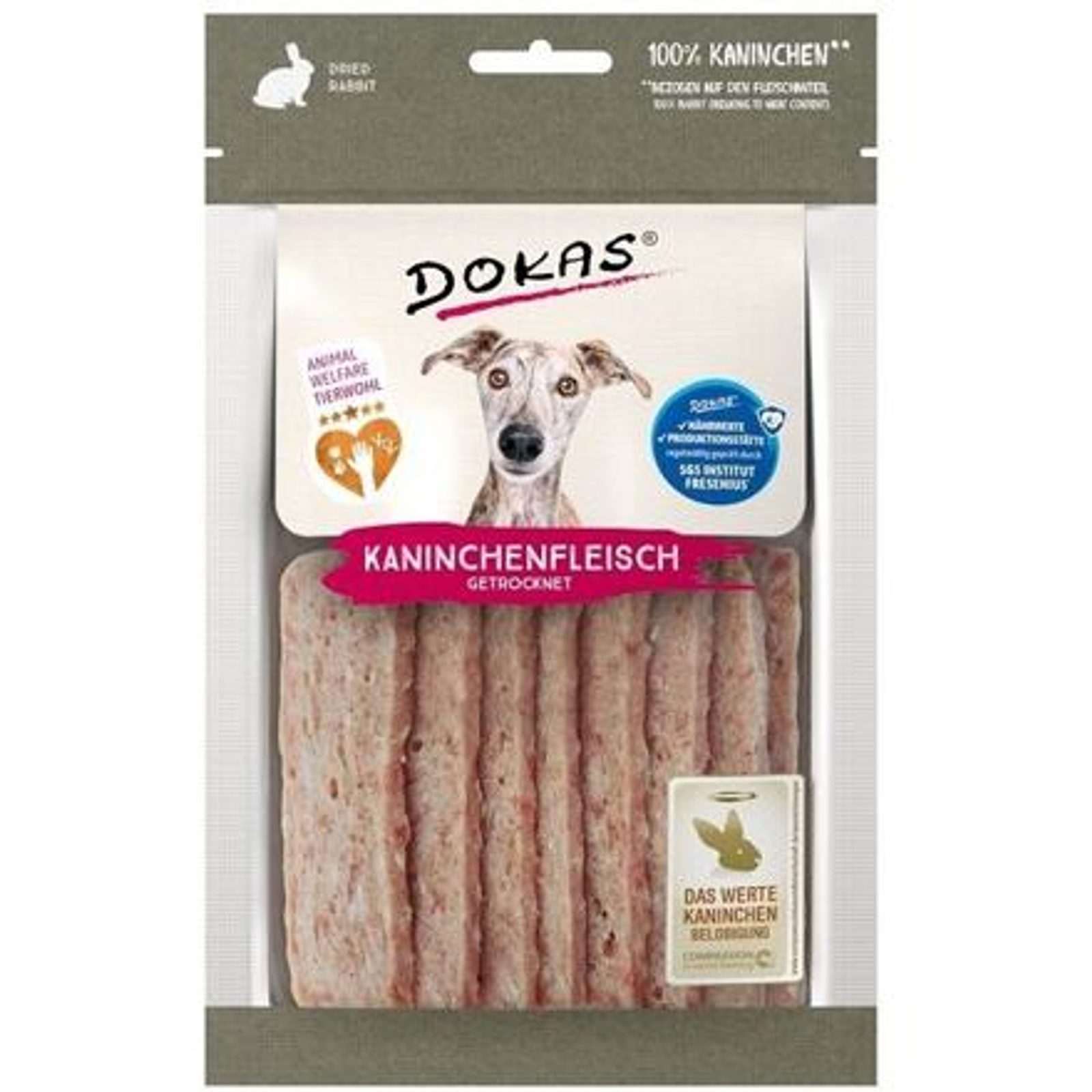 Poloměkké plátky z králičího masa pro zdravé mlsání. Můžete je také nakrájet na malé kousky a použít jako odměny při tréninku. Vynikající