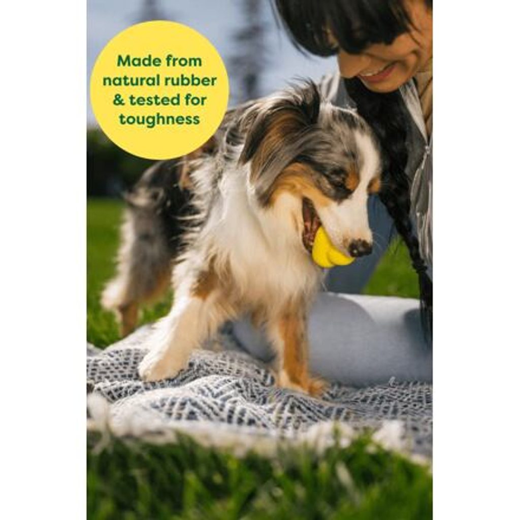 Aportovací hračka z přírodního kaučuku, která nepředvídatelně skáče do všech stran a plave na vodě. Příjemná na dotek, jasně viditelná a odolná! Velikost 7,6 cm. Jako