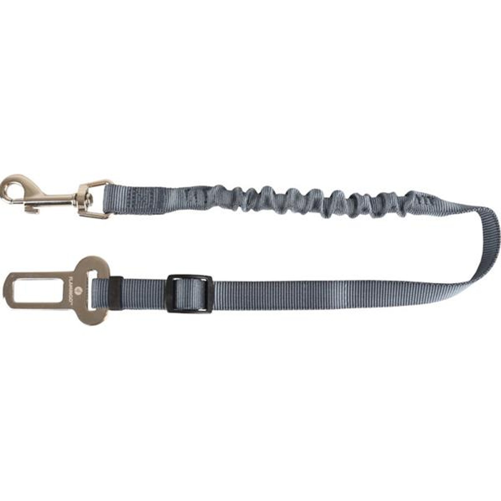Bezpečnostní pás pro psa s amortizérem L Flamingo Bezpečnostní pás pro psa s amortizérem L Flamingo Bezpečnostní pás Ruka s amortizérem a nastavitelnou délkou je určen pro bezpečnou přepravu psů velkých plemen do 30 kg. Zajišťuje, aby se pes nemohl během jízdy volně pohybovat po autě, a zároveň ho chrání v případě nehody. Pás se jedním koncem připne stejně jako běžný bezpečnostní pás a druhým koncem pomocí odolné karabiny k postroji psa. Je vybaven amortizérem, který tlumí nárazy a škubnutí při prudkém brzdění. Kompatibilní s většinou standardních bezpečnostních pásů v automobilech (není vhodný pro vozidla značek Chevrolet, Saab nebo Volvo). Vždy používejte s postrojem, nikoliv s obojkem. Hlavní přednosti: zabraňuje volnému pohybu psa po vozidle s amortizérem nastavitelná délka rychlá a snadná instalace odolná kovová karabina pro bezpečné připnutí k postroji vhodný pro většinu standardních bezpečnostních pásů Velikost: L Rozměry (cca): A = 60–80 cm, B = 2,5 cm (viz obrázek) Materiál: polyester Barva: šedá Upozornění: Používejte vždy v kombinaci s postrojem, nikoli s obojkem!