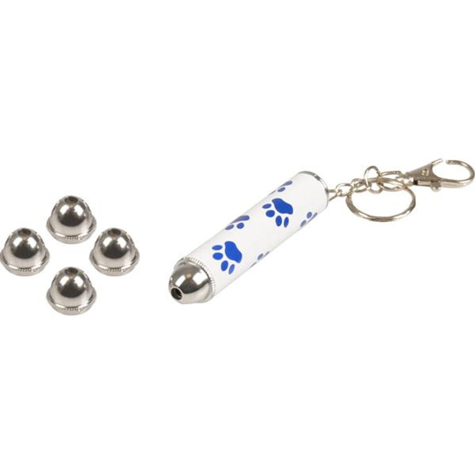 Hračka cat Laser 5 v 1 Flamingo Hračka cat Laser 5 v 1 Flamingo Namiřte laser na podlahu nebo stěnu, stiskněte tlačítko a nechejte kočku lovit nepolapitelnou kořist! Pro větší rozmanitost lze výměnou koncovky měnit tvar laserového paprsku (5 motivů – klasický bod, smajlík, motýl, hmyz nebo myš). Hlavní přednosti: viditelnost do vzdálenosti 3 metrů, 5 koncovek s různými motivy, balení obsahuje 3 baterie LR44, s kroužkem a karabinkou (k připnutí na klíče apod.). Jak správně používat laser: Honit se dlouhou dobu za nepolapitelnou kořistí může být pro kočky frustrující. Nepoužívejte proto laser příliš dlouho bez přestávky. Kromě toho se doporučuje v průběhu hraní kočku odměňovat pamlsky a hru zakončit oblíbenou hračkou (např. vábničkou, myškou nebo míčkem), kterou kočka lapit může. Získá tak pocit úspěšného lovu a bude se těšit na další hru. Materiál: ABS plast Barva: bílá a modrá Vzor: tlapky Upozornění: Laserem nikdy nesviťte zvířatům ani lidem do očí. Mohlo by dojít k poškození zraku!