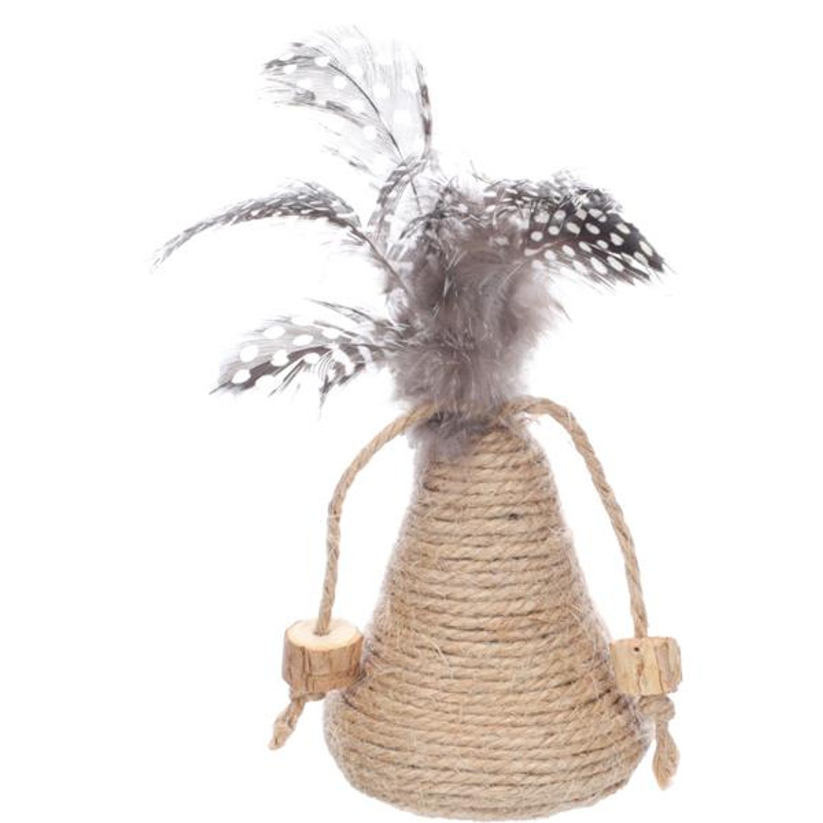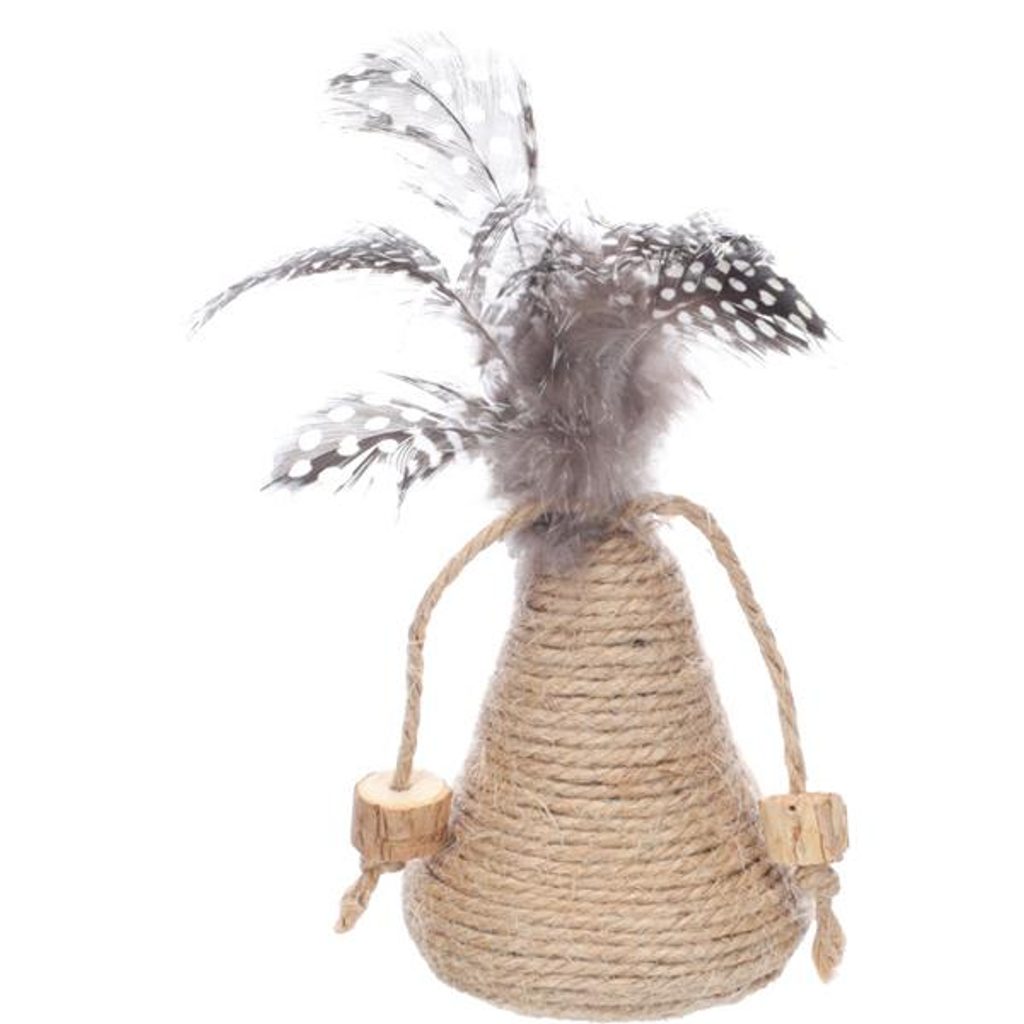 Hračka cat Yutsa kužel hnědý Flamingo Hračka cat Yutsa kužel hnědý Flamingo Nechejte svou kočku dovádět s chrastícím kuželem Yutsa vyrobeným z jutového provázku a dřeva matatabi. K dalšímu upoutání pozornosti slouží peříčka a provázky s matatabi špalíky. Dřevo matatabi kočky milují, mazlí se s nimi, olizují je a koušou, čímž si navíc čistí chrup. Rostlina je svými účinky podobná šantě kočičí nebo kozlíku, ale má odlišnou vůni. Hlavní přednosti: dřevo matatabi, s chrastítkem, provázky a peříčky pro větší zábavu. Rozměry (cca): O 6,3 × 14 cm Materiál: matatabi, juta Barva: hnědá, béžová Upozornění: Není určeno dětem. Kočky mohou reagovat na vůni matatabi rozdílně. Na kočku při hře dohlížejte a hračku jí nechávejte k dispozici pouze na omezenou dobu. Hračku pravidelně kontrolujte a v případě poškození přestaňte používat.