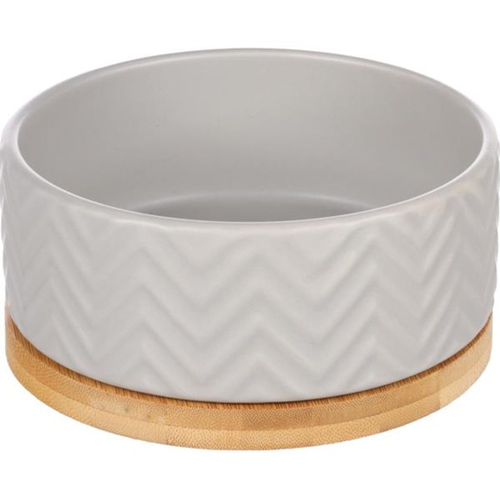 Miska keramická Bianco šedá 990ml Flamingo Miska keramická Bianco šedá 990ml Flamingo Elegantní nádoba na suché i vlhké krmivo nebo na vodu se skládá ze dvou částí: glazovaná keramická miska je vložená do bambusového podkladu. Miska má protiskluzové dno a její keramickou část lze mýt v myčce na nádobí. Rozměry (cca): O 16 cm, výška keramické misky 6,6 cm, celková výška 7,7 cm Objem: 990 ml Materiál: keramika, bambus Barva: šedá