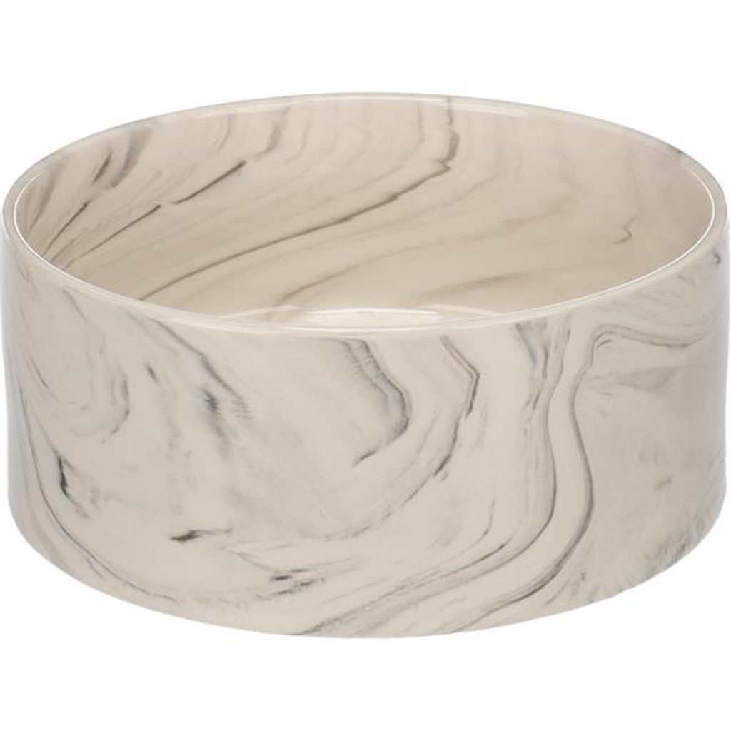 Miska keramika Baron 1,2l šedá Flamingo Miska keramika Baron 1,2l šedá Flamingo Miska Flamingo Baron z glazované keramiky je vhodná na krmivo i na vodu a lze ji bez obav mýt v myčce na nádobí. Rozměry (cca): A = 18 cm, B = 7,5 cm, C = 18 cm (viz obrázek) Objem: 1,2 l Materiál: glazovaná keramika Barva a vzor: šedá, mramorovaná