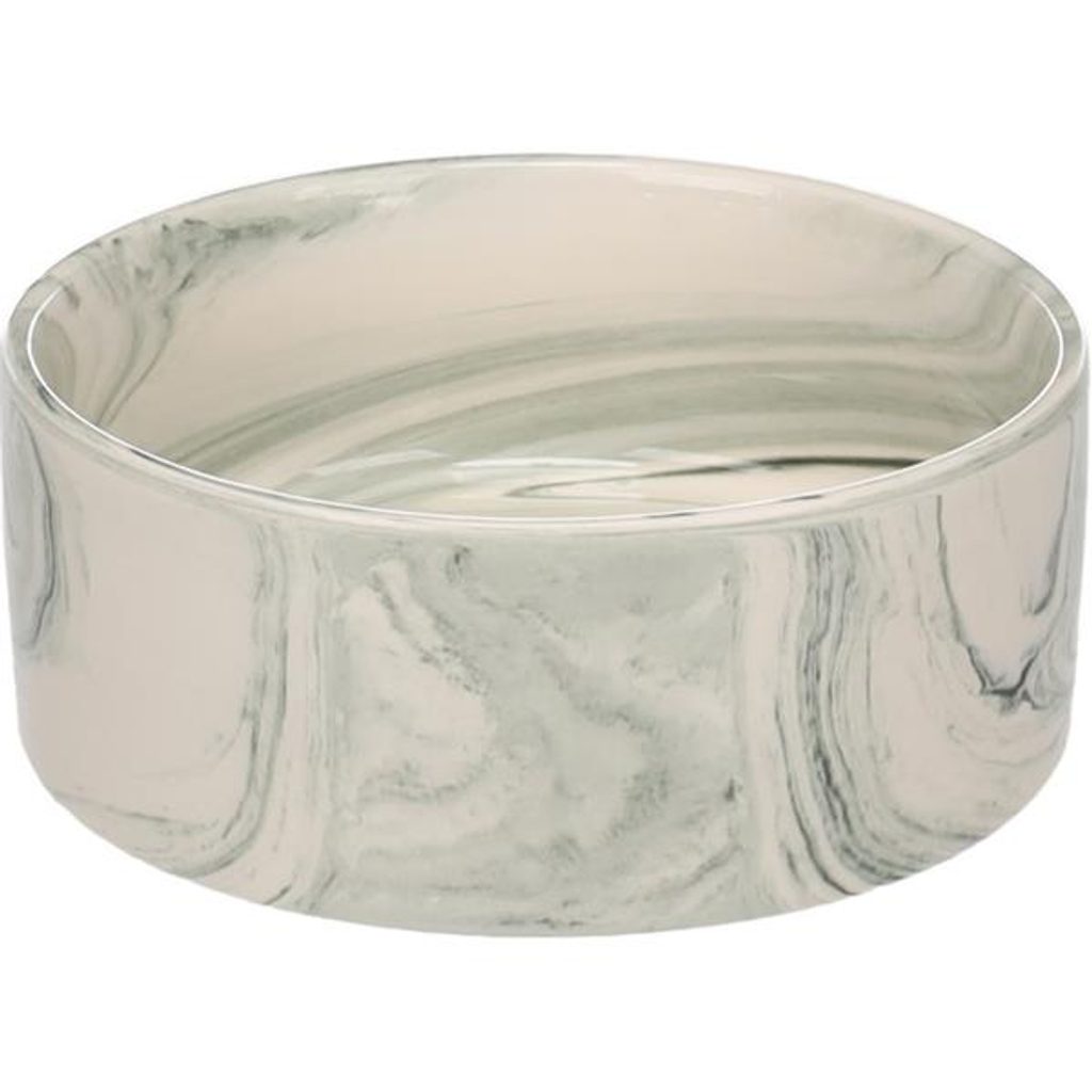 Miska keramika Baron 450ml zelená Flamingo Miska keramika Baron 450ml zelená Flamingo Miska Flamingo Baron z glazované keramiky je vhodná na krmivo i na vodu a lze ji bez obav mýt v myčce na nádobí. Rozměry (cca): A = 13,5 cm, B = 5 cm, C = 13,5 cm (viz obrázek) Objem: 450 ml Materiál: glazovaná keramika Barva a vzor: zelená, šedá, mramorovaná