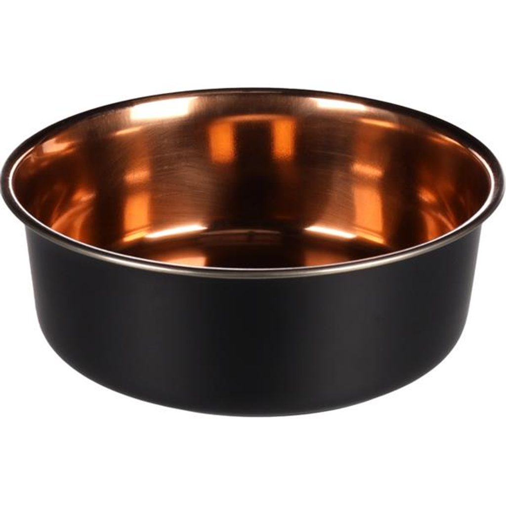 Miska nerez Ezra 475ml černá Flamingo Miska nerez Ezra 475ml černá Flamingo Elegantní miska Flamingo Ezra v kombinaci černé a měděné barvy je vhodná pro psy všech plemen. Je vyrobena z kvalitní nerezové oceli, která zaručuje dlouhou životnost a snadnou údržbu. Spodní strana misky je opatřena protiskluzovými prvky, které zabraňují jejímu nechtěnému posouvání během krmení. Misku můžete bez obav mýt v myčce na nádobí. Hlavní přednosti: odolná nerezová ocel protiskluzové dno lze mýt v myčce na nádobí Rozměry (cca): A = 13 cm, B = 4,5 cm, C = 10,8 cm (viz obrázek) Objem: 475 ml Materiál: nerezová ocel Barva: černá, měděná