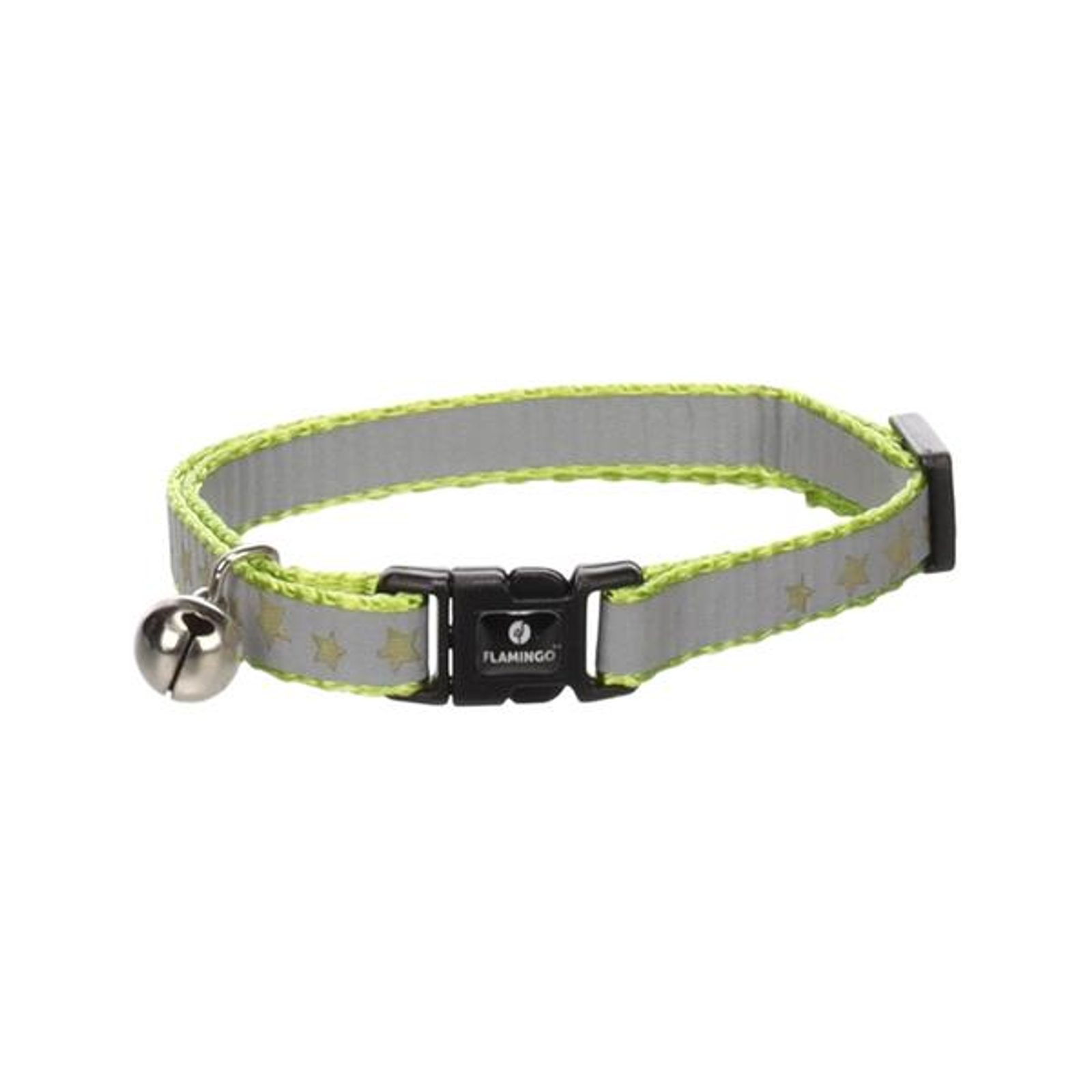 Obojek cat Minx 20-34cm zelený Flamingo Obojek cat Minx 20-34cm zelený Flamingo Obojek z odolného nylonu má po celé délce široký reflexní pás, který zvyšuje bezpečí kočky za snížené viditelnosti. Zapíná se na plastovou přezku s bezpečnostním zámkem. Jeho délku lze nastavit v rozsahu 20–34 cm. K obojku je připnutá rolnička, která při pohybu jemně zvoní a varuje tak potenciální kořist. Rozměry (cca): 1 × 20–34 cm Materiál: nylon, plast, kov Barva: světle zelená, stříbrná Vzor: hvězdy