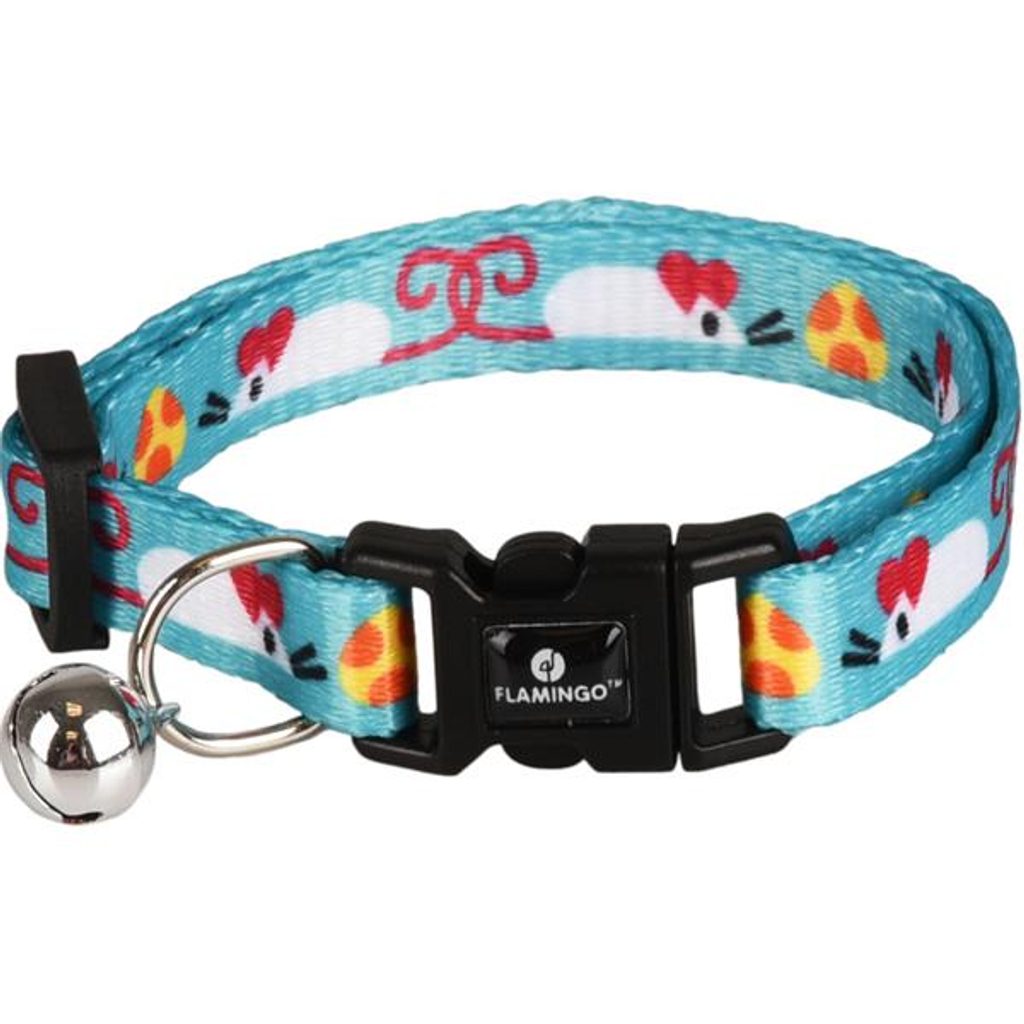 Obojek kitten Arwen 15-25cm modrý Flamingo Obojek kitten Arwen 20-30cm modrý Flamingo Nylonový obojek Flamingo Arwen je vhodný pro koťata všech plemen. Má nastavitelnou délku a zapíná se na bezpečnostní plastovou karabinu. Obojek je opatřený rolničkou, která upozorní ptáky na přítomnost kočičího predátora. Rozměry obojku (cca): délka: 15–25 cm, šířka: 1 cm, tloušťka: 1 mm Materiál: nylon Barva: světle modrá s motivem myšek a sýrů