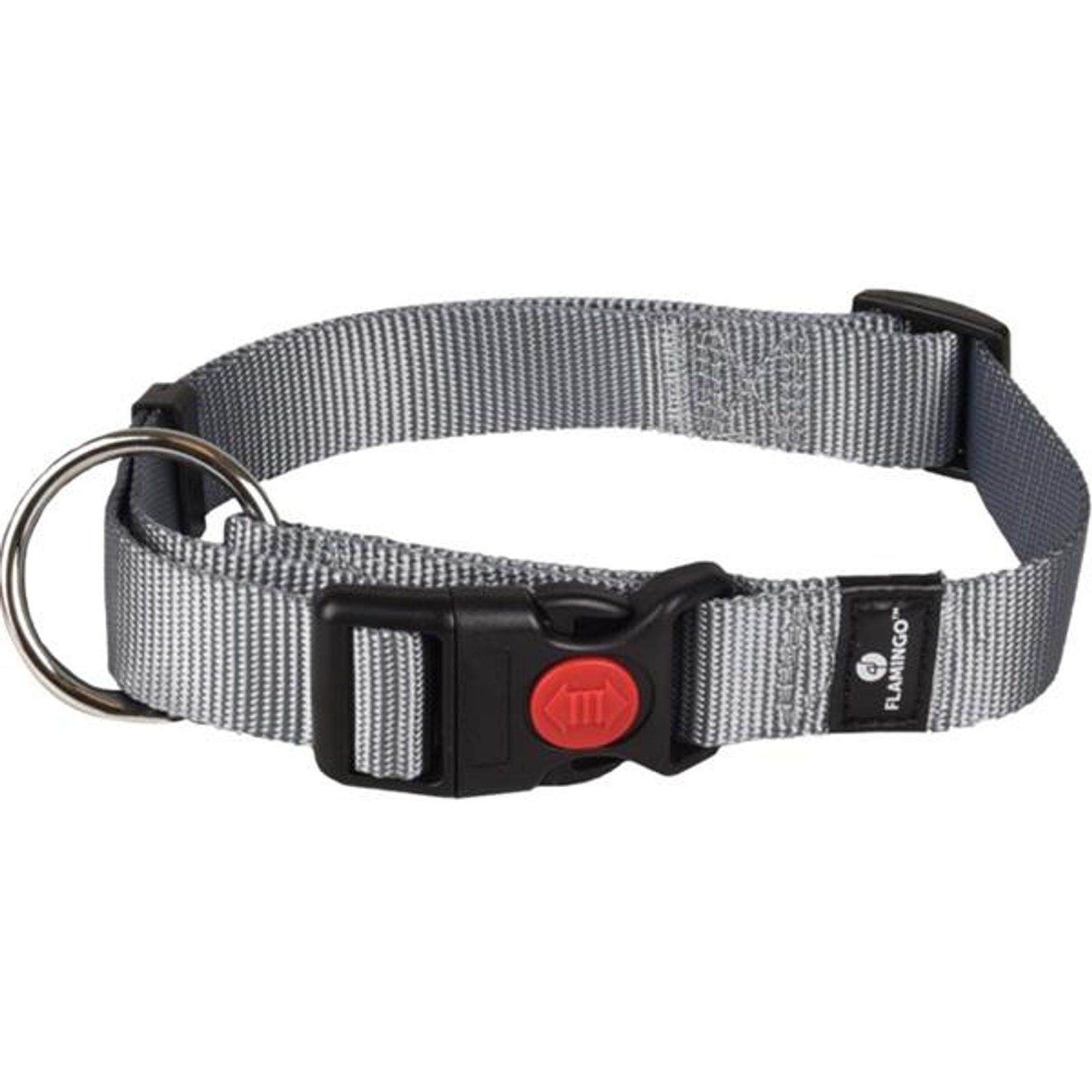 Obojek nylon Ziggi šedý S 1,5x30-45cm Flamingo Obojek nylon Ziggy šedý S 1,5x30-45cm Flamingo Obojek Flamingo Ziggi je vhodný pro štěňata i dospělé psy. Je vyroben z pevného a voděodolného nylonu. Má pohodlné zapínání na plastovou přezku s bezpečnostním zámkem a je opatřen chromovaným D-kroužkem na připnutí vodítka. Délku lze nastavit v rozmezí 30–45 cm. Velikost: S Rozměry (cca): 1,5 × 30–45 cm Materiál: nylon, kov, plast Barva: šedá