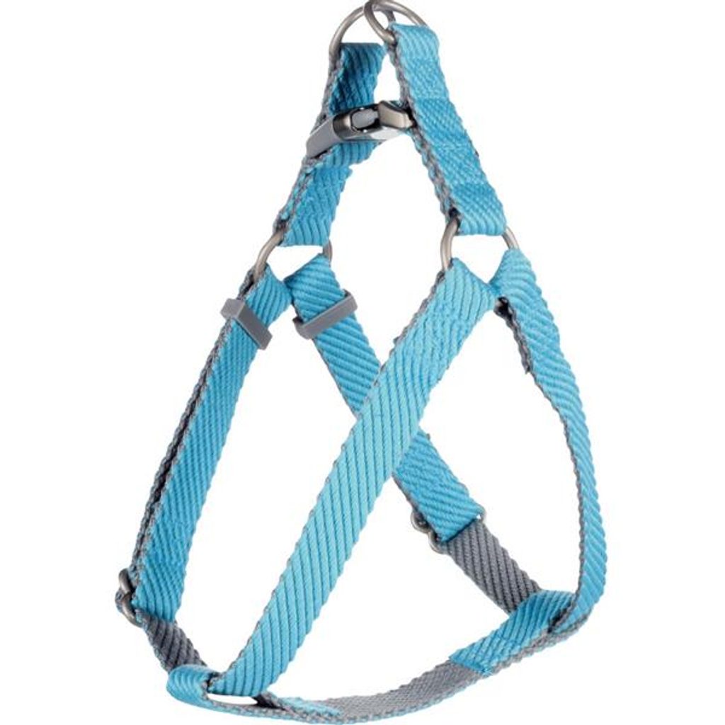 Postroj nylon Elly modrý 2x35-60cm Flamingo Postroj nylon Elly modrý 2x35-60cm Flamingo Postroj typu H pro psy Flamingo Elly je vyroben z pevného a voděodolného nylonu. Lze jej snadno nastavit v rozsahu 35–60 cm. Postroj je vybaven dvěma kovovými kroužky pro odlehčení tahu, které snižují tlak na přezku a zvyšují pohodlí psa. Zapínání je na přezku z plastu a kovu s matně niklovaným povrchem. Pro připnutí vodítka slouží dva chromované D-kroužky. Díky své konstrukci je postroj ideální zejména pro psy, kteří netahají. Velikost: M Rozměry (cca): A = 35–60 cm, B = 35–60 cm (viz obrázek) šířka pásku 2 cm Materiál: nylon, kov, plast Barva: světle modrá, šedá