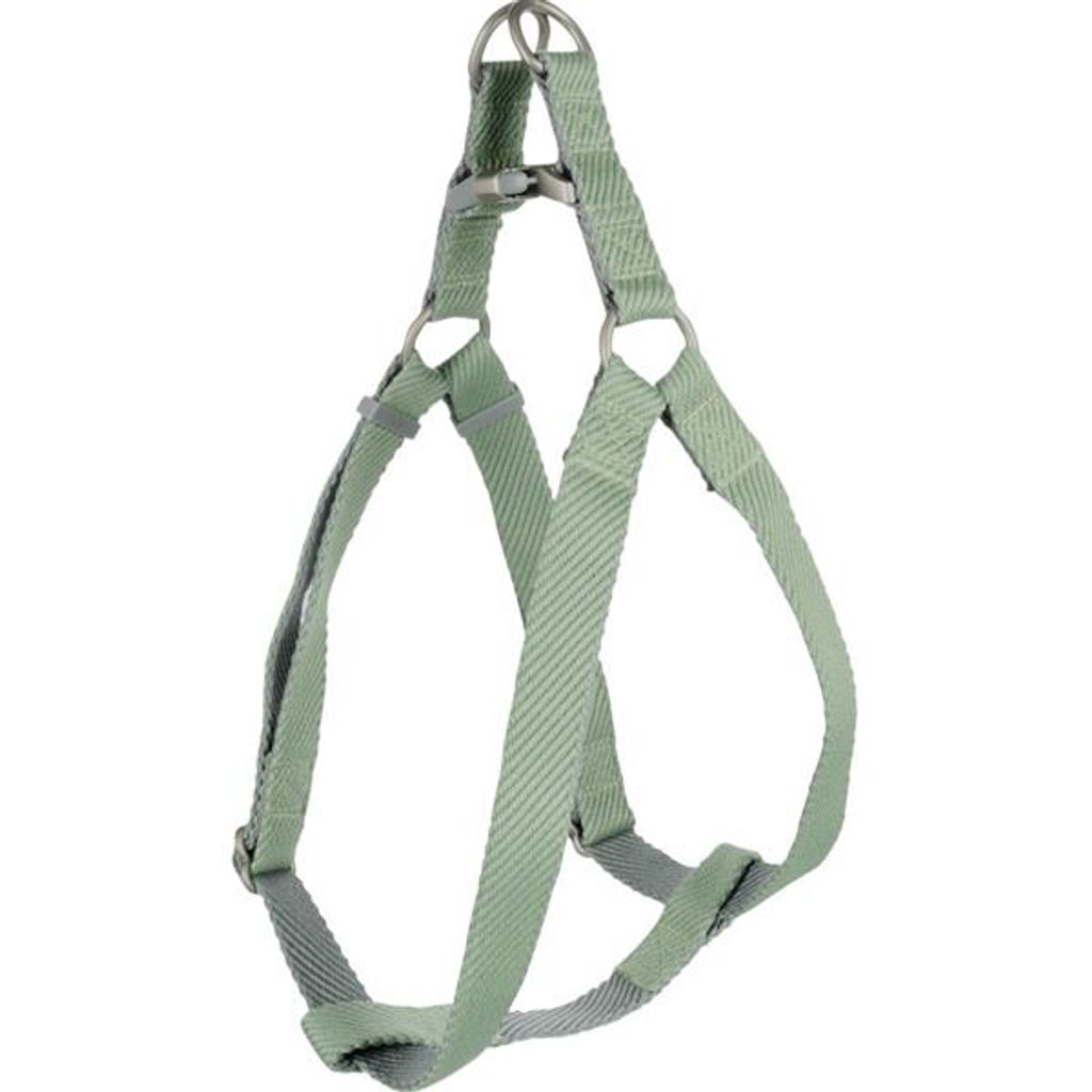 Postroj nylon Elly zelený 2,5x60-90cm Flamingo Postroj nylon Elly zelený 2,5x60-90cm Flamingo Postroj typu H pro psy Flamingo Elly je vyroben z pevného a voděodolného nylonu. Lze jej snadno nastavit v rozsahu 60–90 cm. Postroj je vybaven dvěma kovovými kroužky pro odlehčení tahu, které snižují tlak na přezku a zvyšují pohodlí psa. Zapínání je na přezku z plastu a kovu s matně niklovaným povrchem. Pro připnutí vodítka slouží dva chromované D-kroužky. Díky své konstrukci je postroj ideální zejména pro psy, kteří netahají. Velikost: XL Rozměry (cca): A = 60–90 cm, B = 60–90 cm (viz obrázek) šířka pásku 2,5 cm Materiál: nylon, kov, plast Barva: světle zelená, šedá