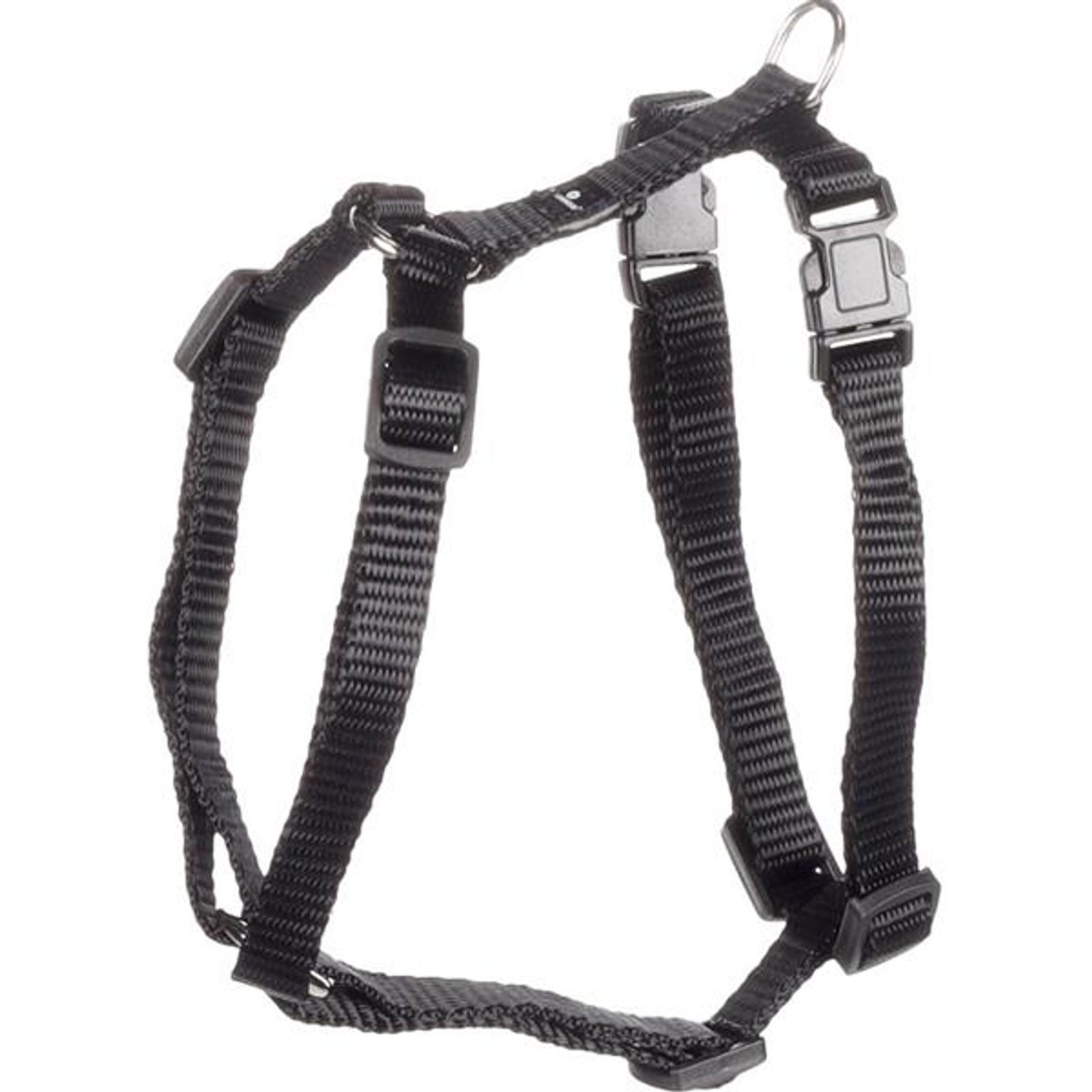 Postroj nylon Ziggi černý XS 1x25-40cm Flamingo Postroj nylon Ziggy černý XS 1x25-40cm Flamingo Postroj typu H pro psy Flamingo Ziggi je vyroben z pevného a voděodolného nylonu. Postroj je plně nastavitelný, takže lze snadno přizpůsobit tvaru těla psa. Zapíná se pomocí dvou plastových přezek – u velikostí S–XL s bezpečnostní pojistkou. Pro připnutí vodítka slouží kovový D-kroužek s lesklou niklovou povrchovou úpravou. Velikost: XS Rozměry (cca): A = 25–40 cm, B = 35–45 cm (viz obrázek) šířka pásku 1 cm Materiál: nylon, kov, plast Barva: černá